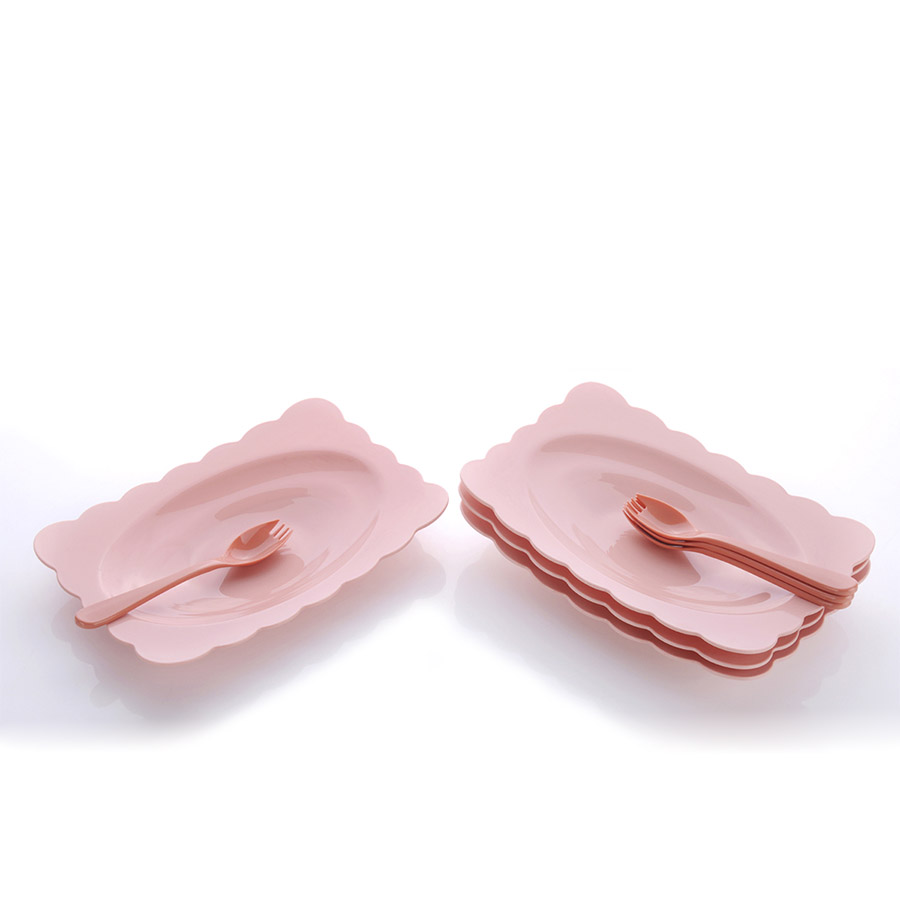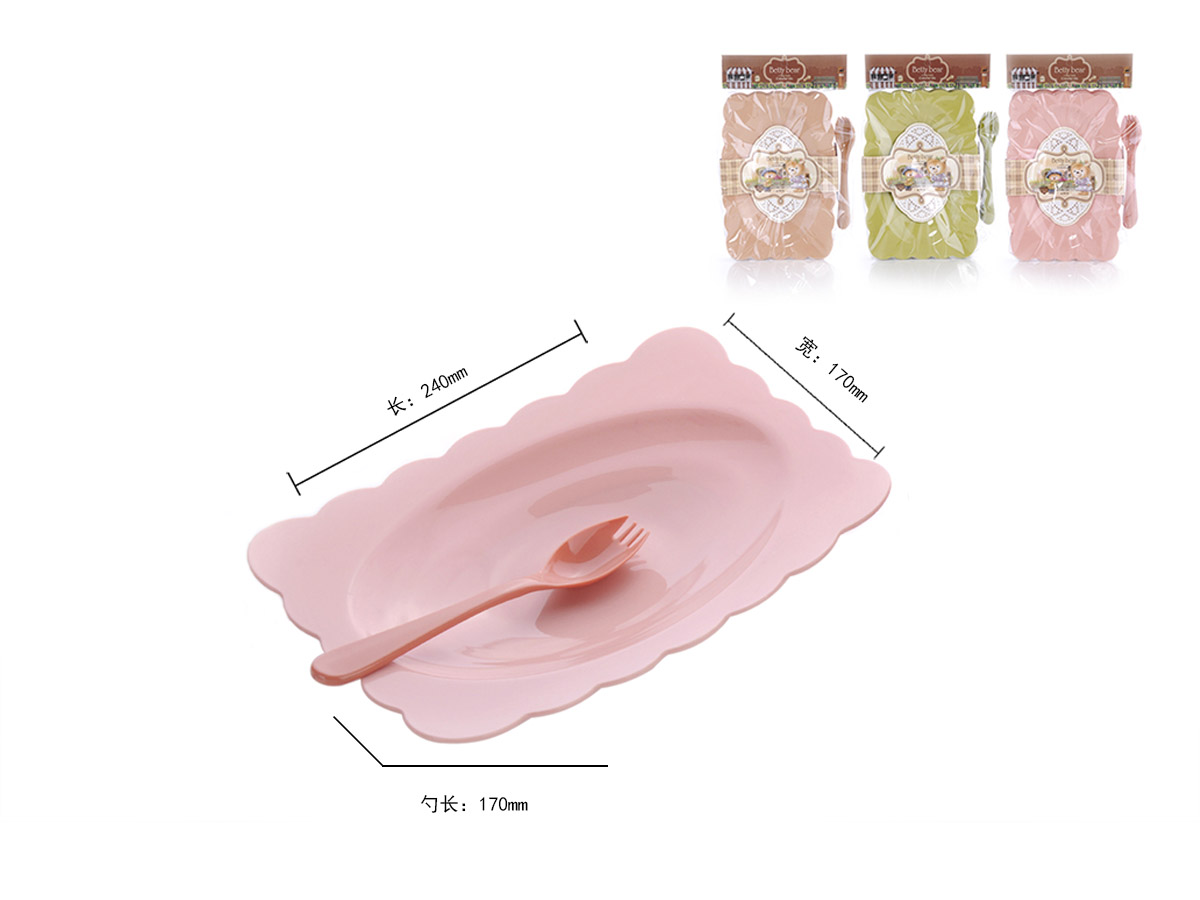 得力熊歐式大號花邊長方餐盤(4pcs)( 配4pcs叉匙)