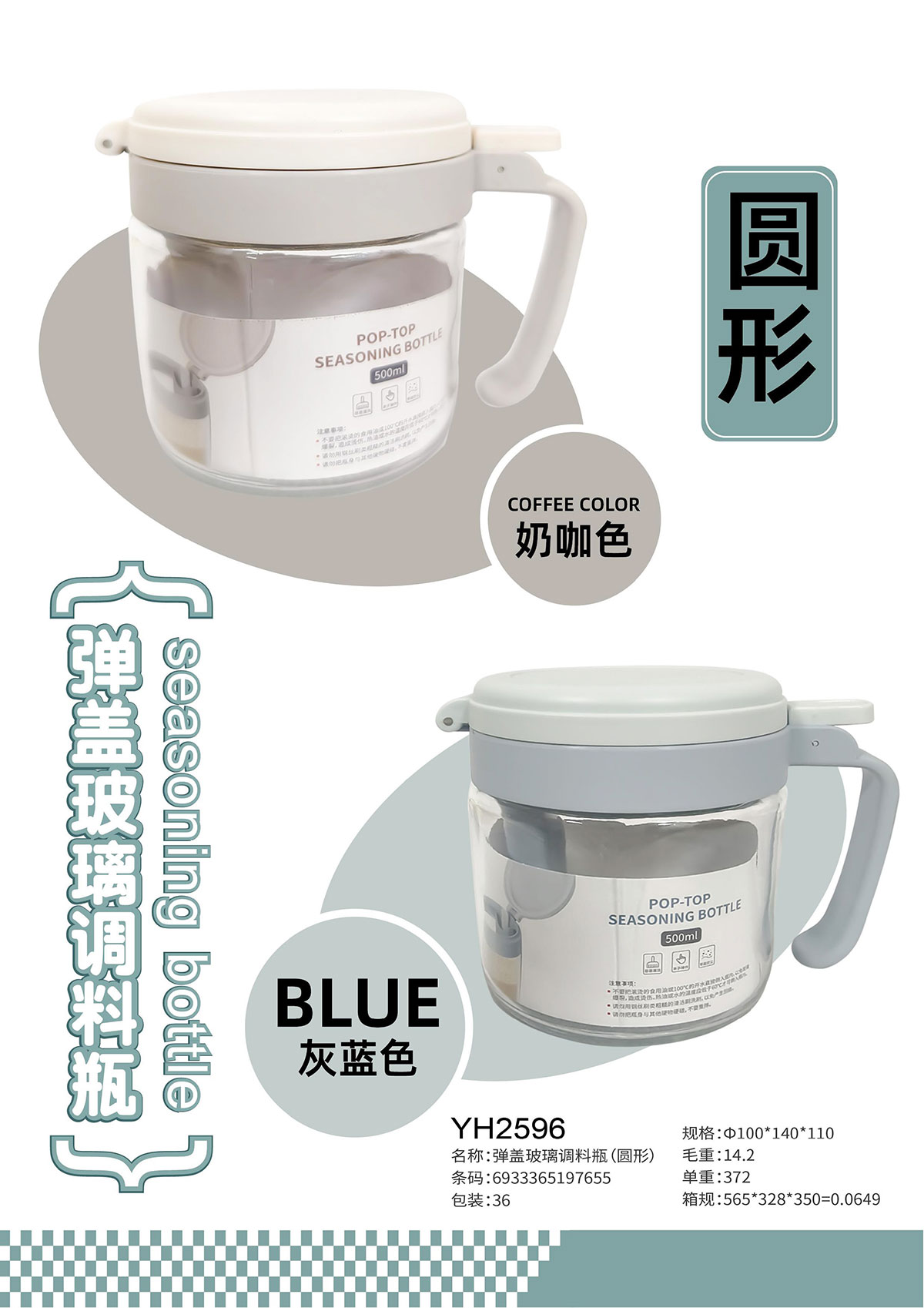 彈蓋玻璃調(diào)料瓶(圓形)