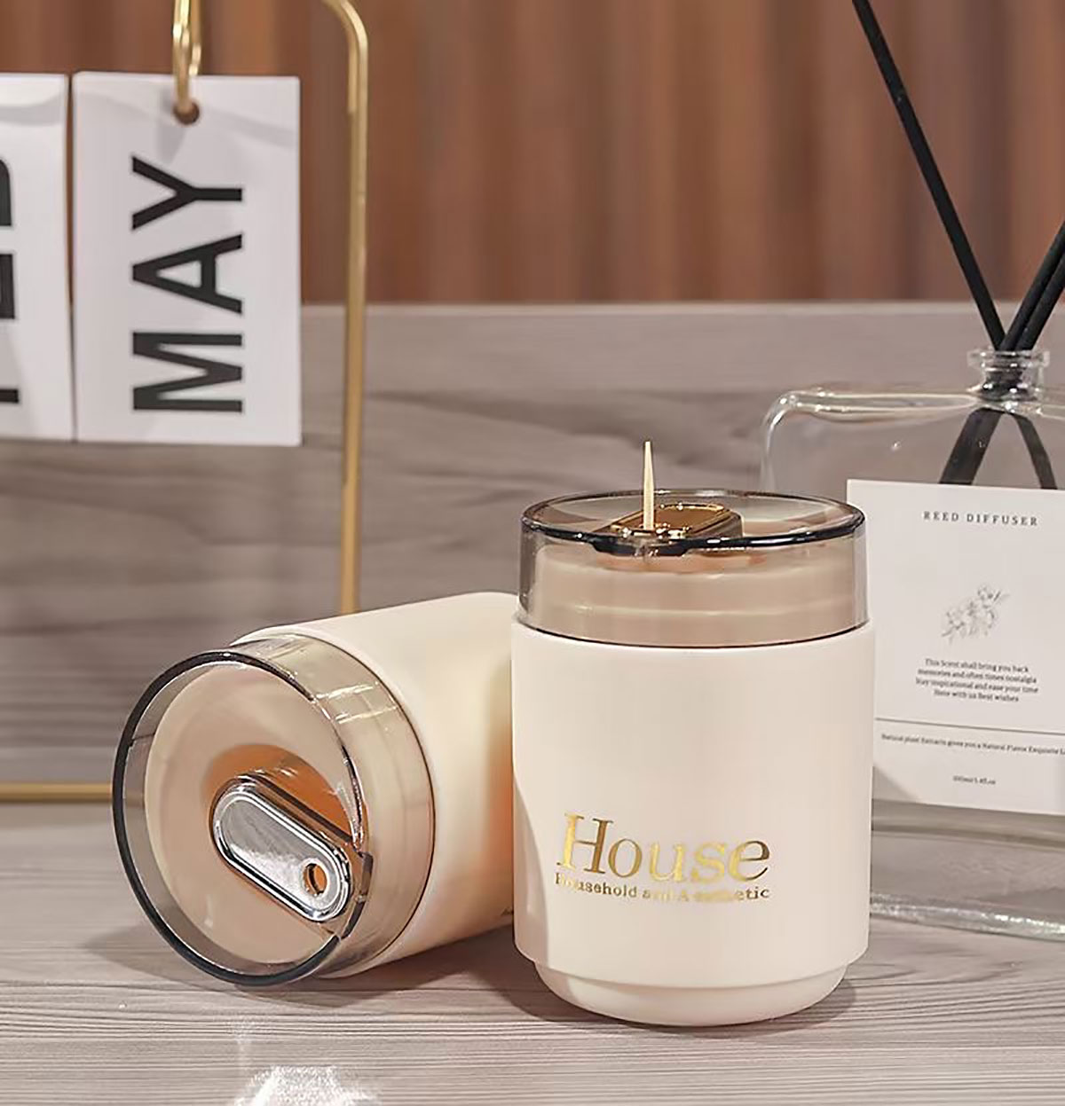 奶油風自動牙簽筒