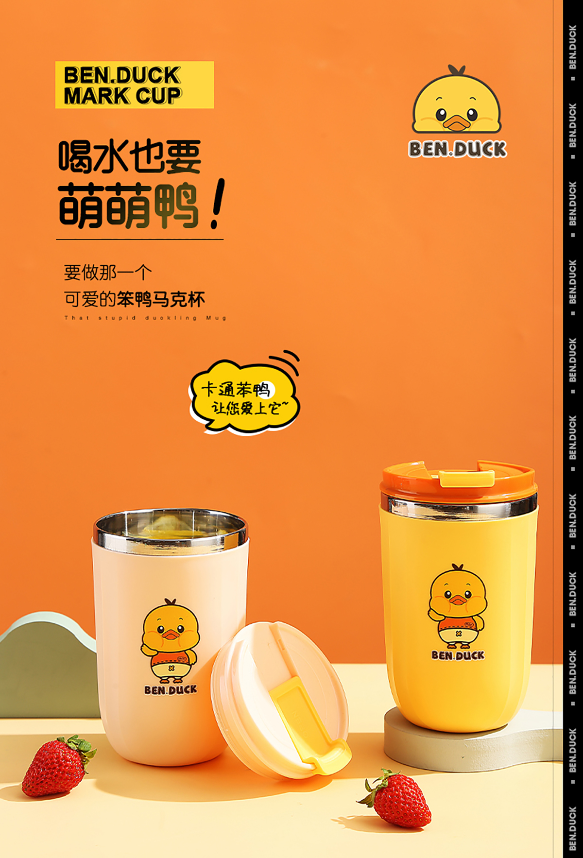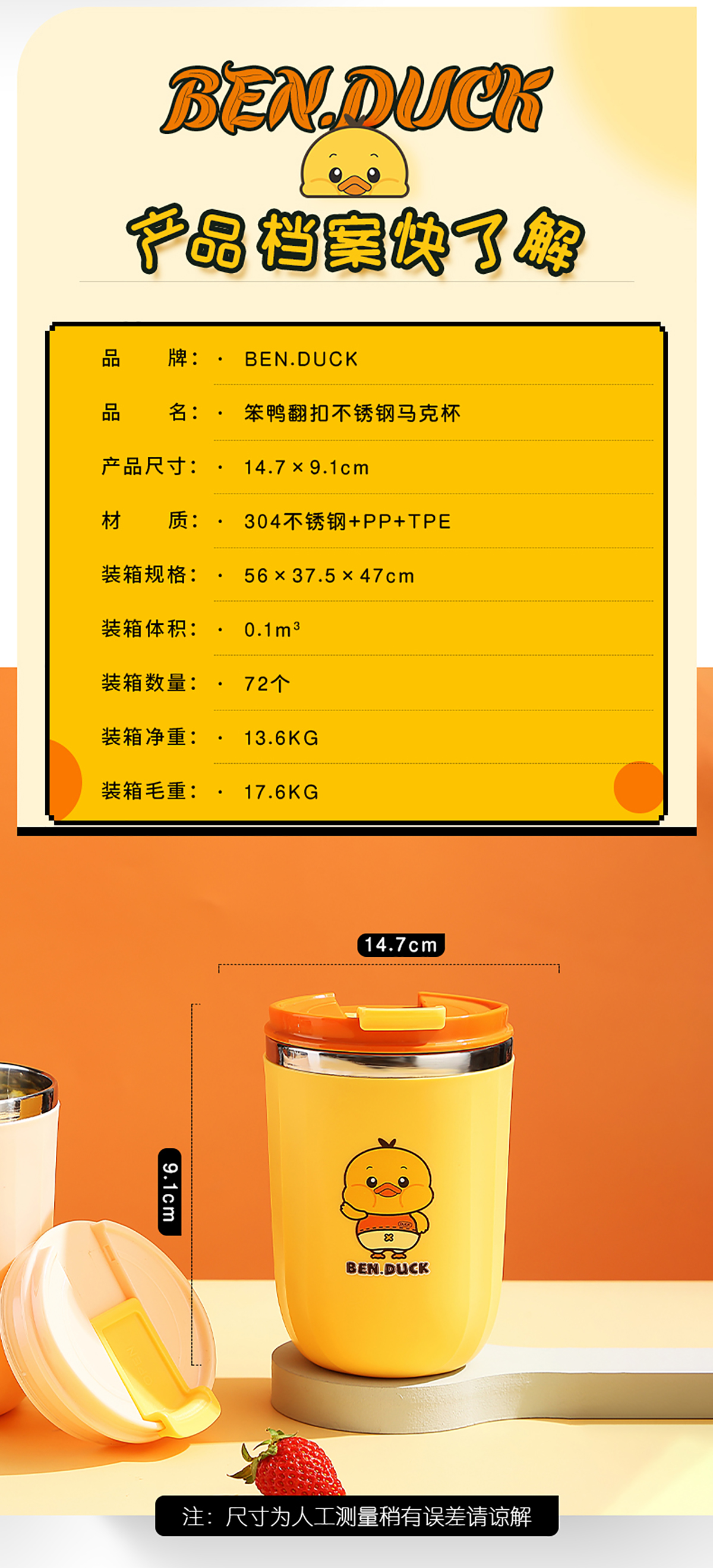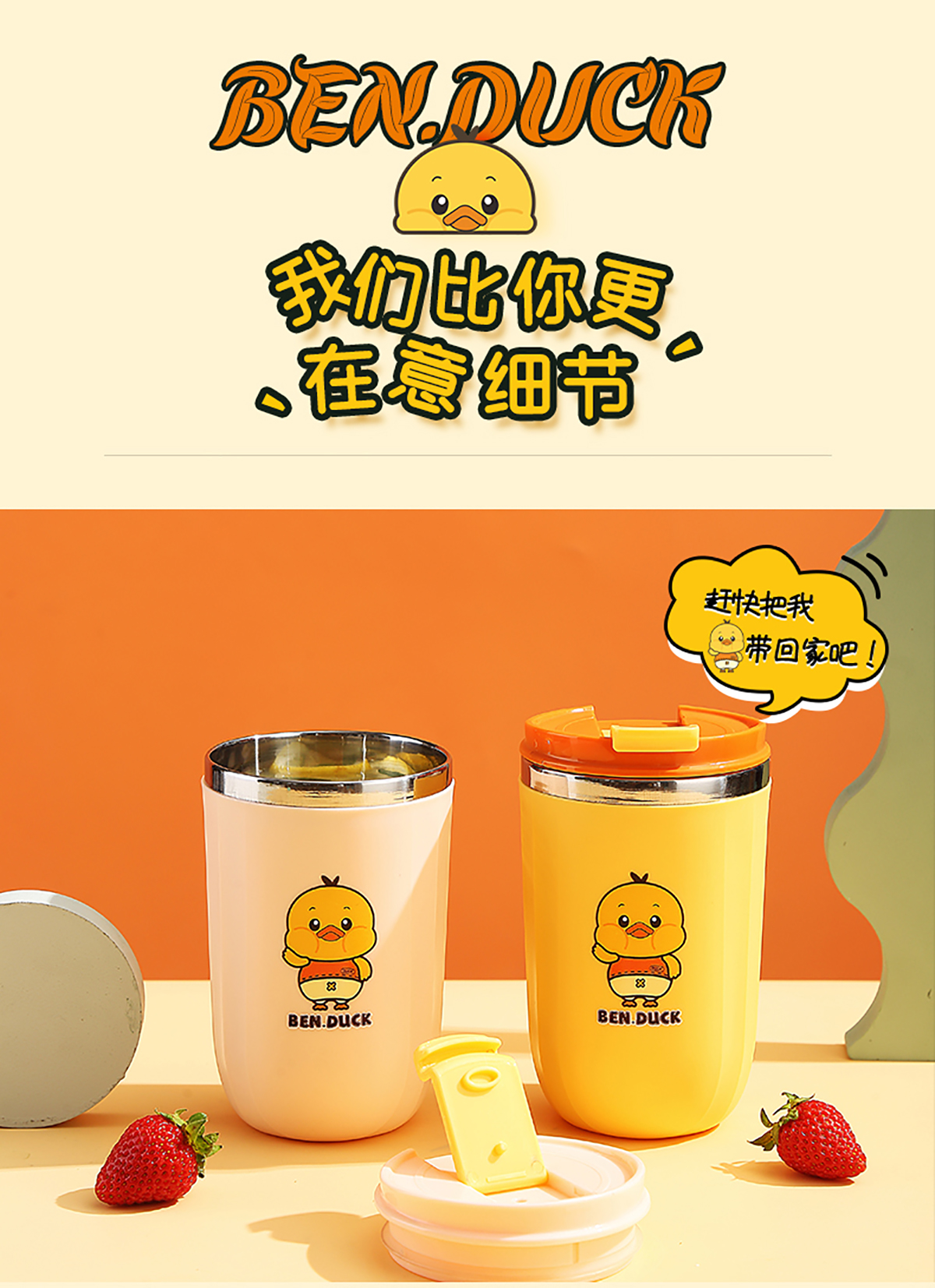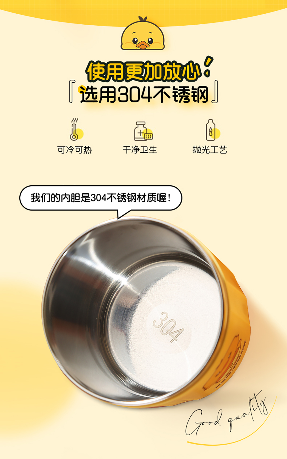 450ml笨鴨304不銹鋼翻扣保溫杯