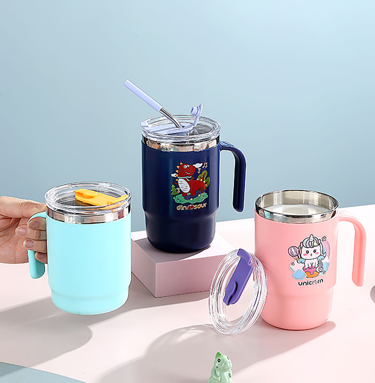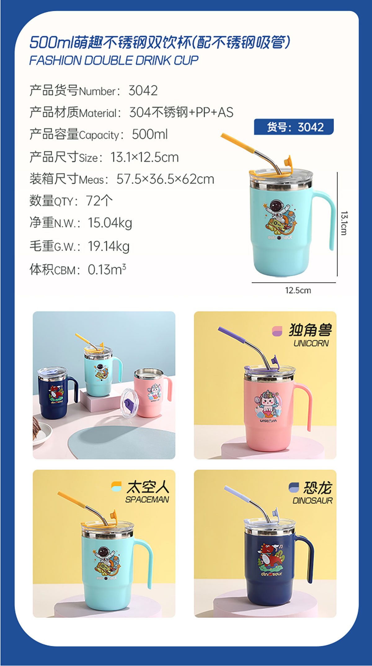 400ml/500ml萌趣不銹鋼雙飲杯(配不銹鋼吸管)
