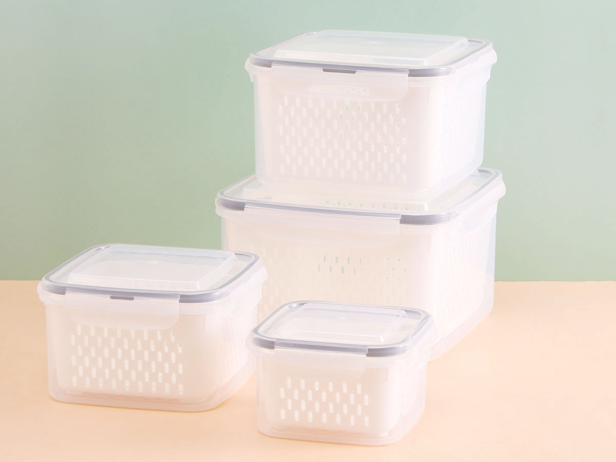 四件套圓形/正方形/長方形密封瀝水保鮮盒