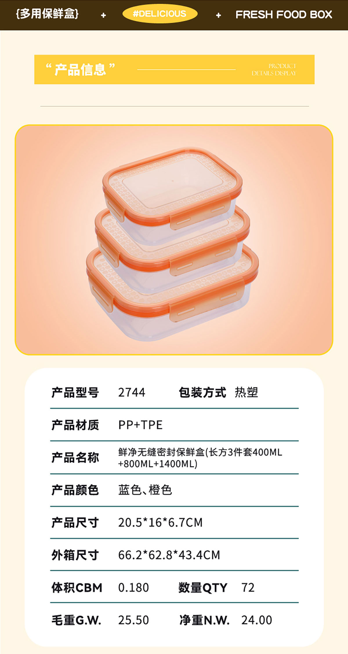 Size: AQX-2744:205*160*67mm/長(zhǎng)方3件套400ml+800ml+1400ml