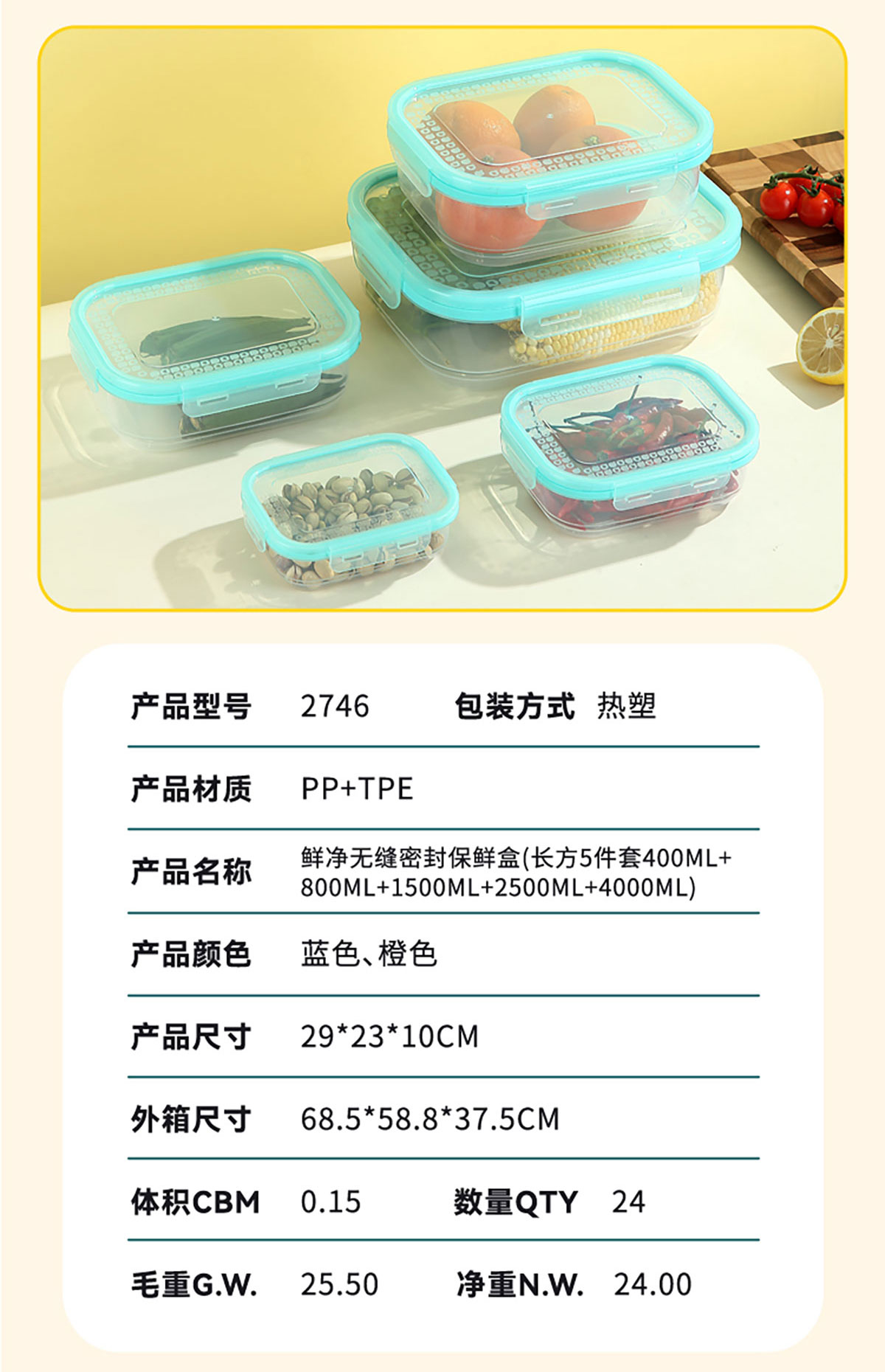 AQX-2746:290*230*100mm/長(zhǎng)方5件套400ml+800ml+1500ml+2500ml+4000ml
