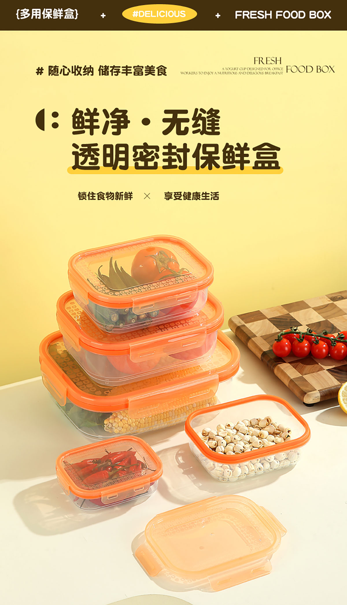 鮮凈無(wú)縫密封保鮮盒(長(zhǎng)方3件套/5件套)