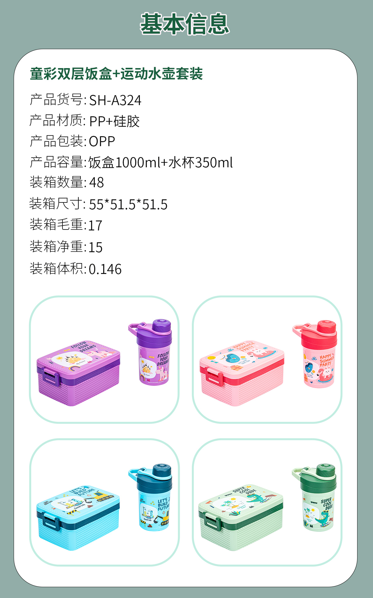 童彩單層/雙層飯盒+運(yùn)動水壺套裝(飯盒800ml/1000ml+水杯350ml