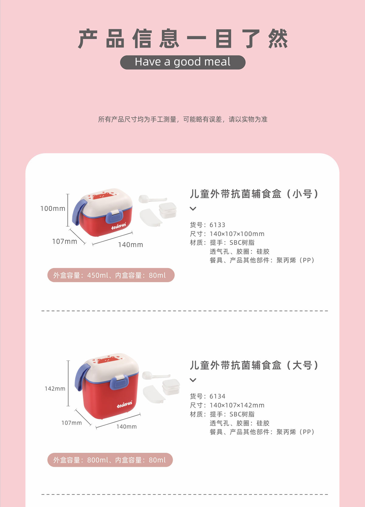 Size: HM-6133:140*107*100mm/450ml+80ml