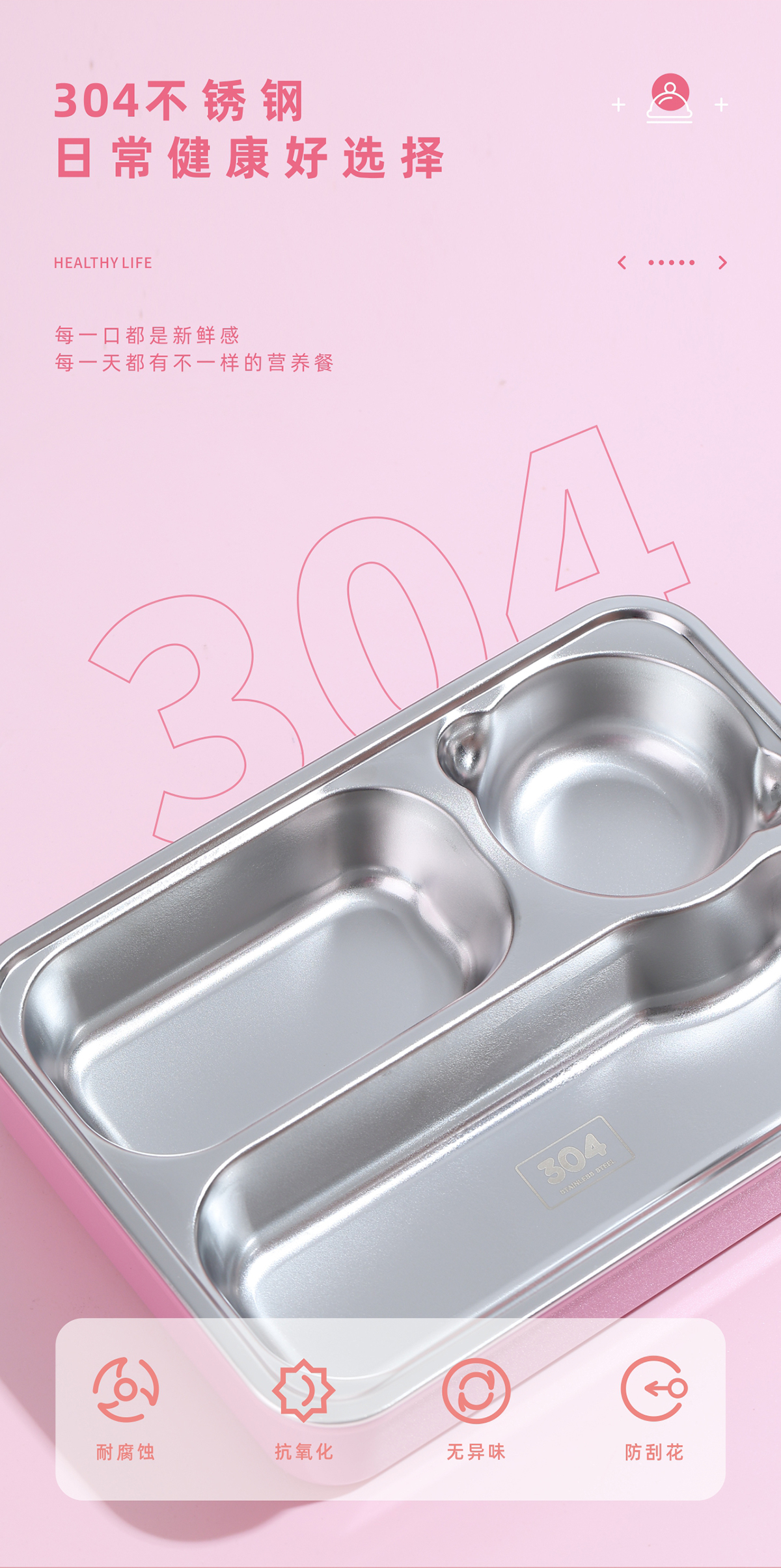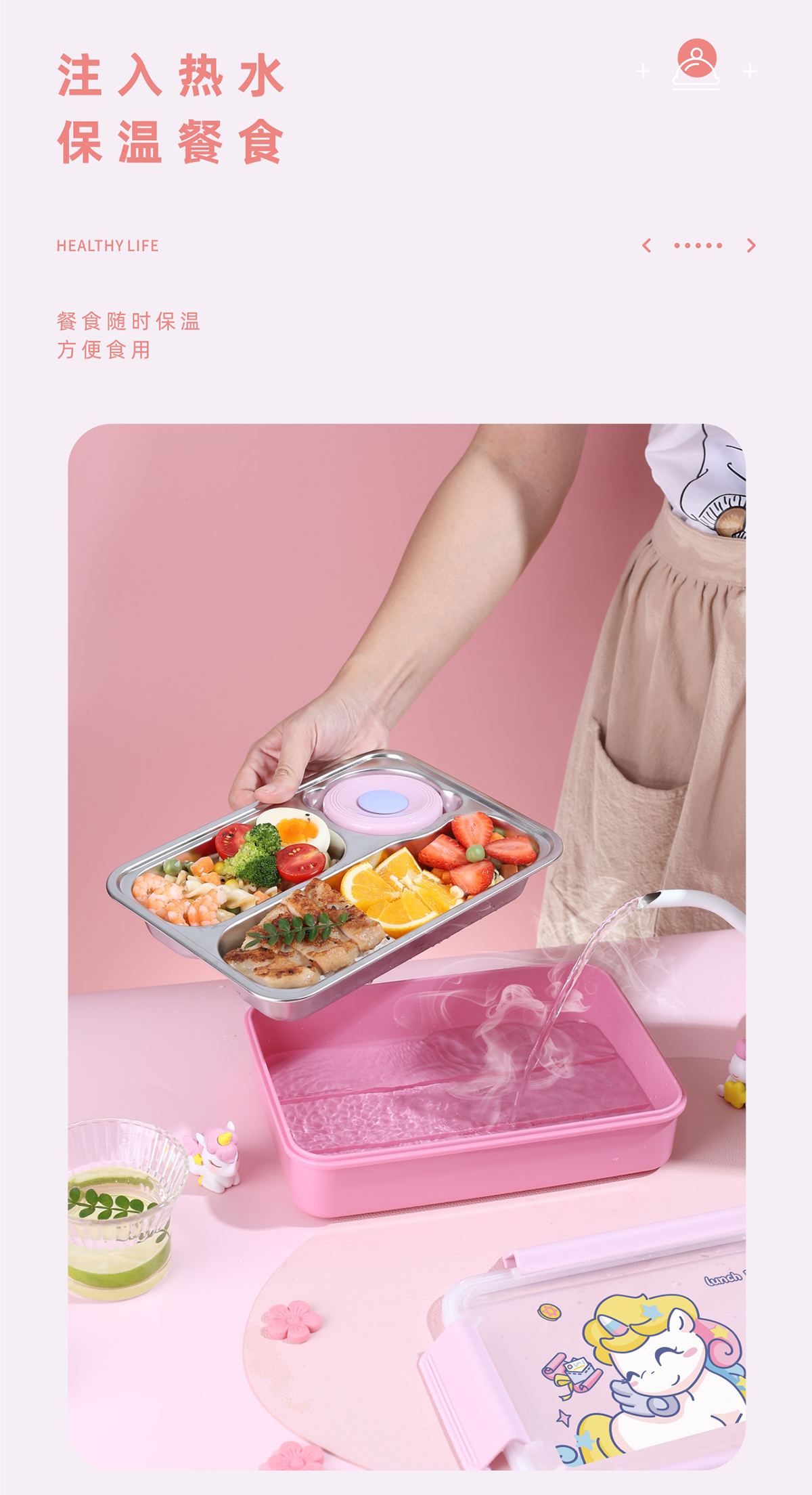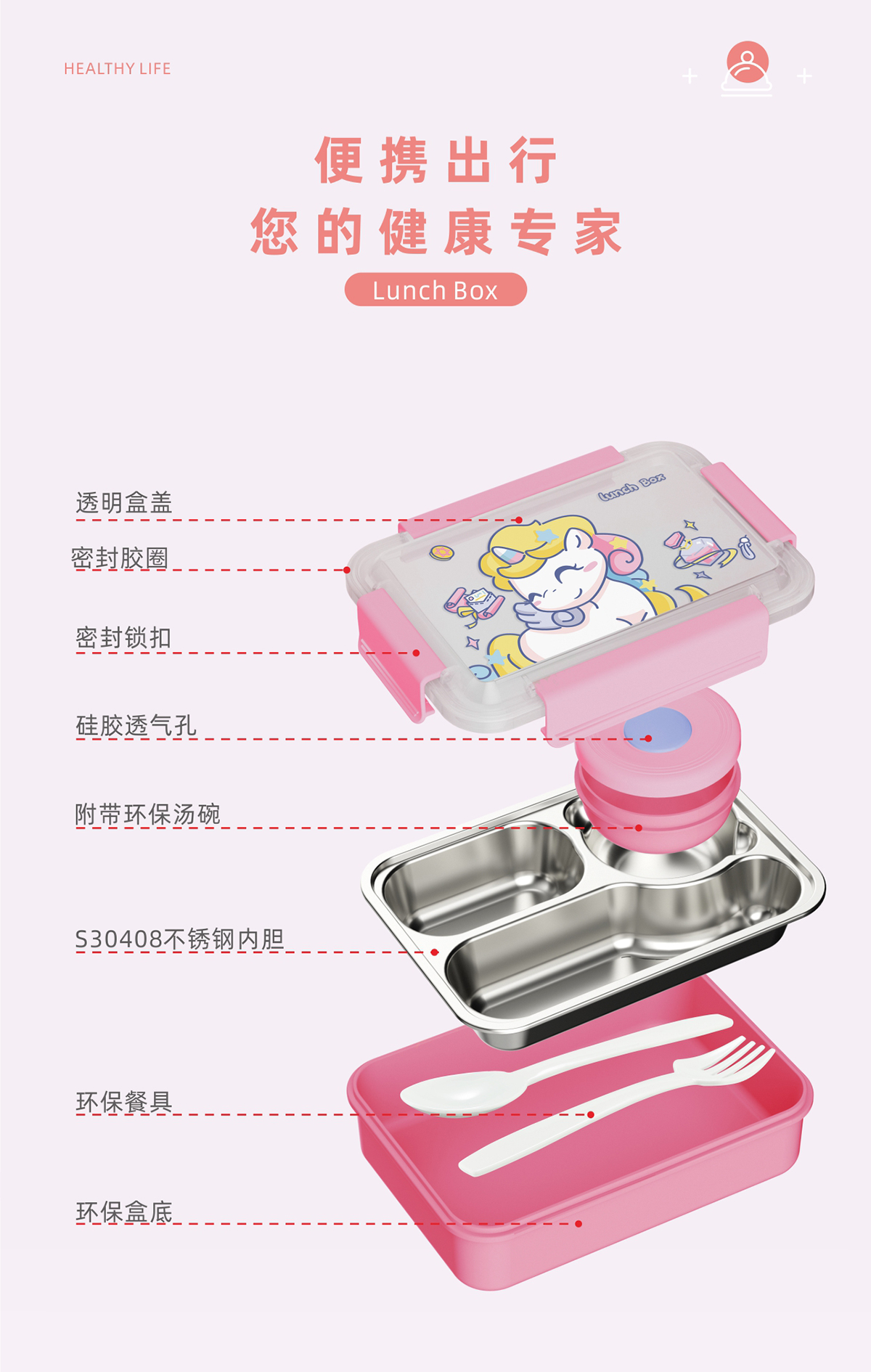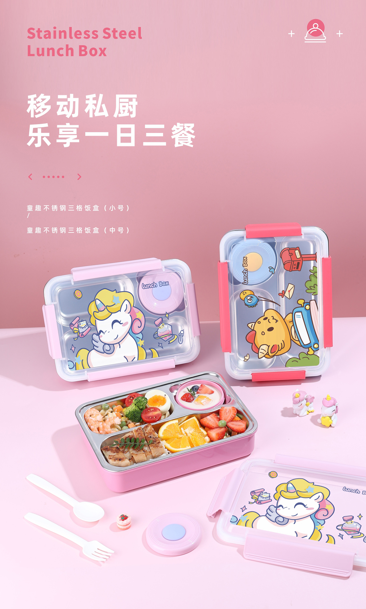 童趣不銹鋼三格飯盒(小號/中號)