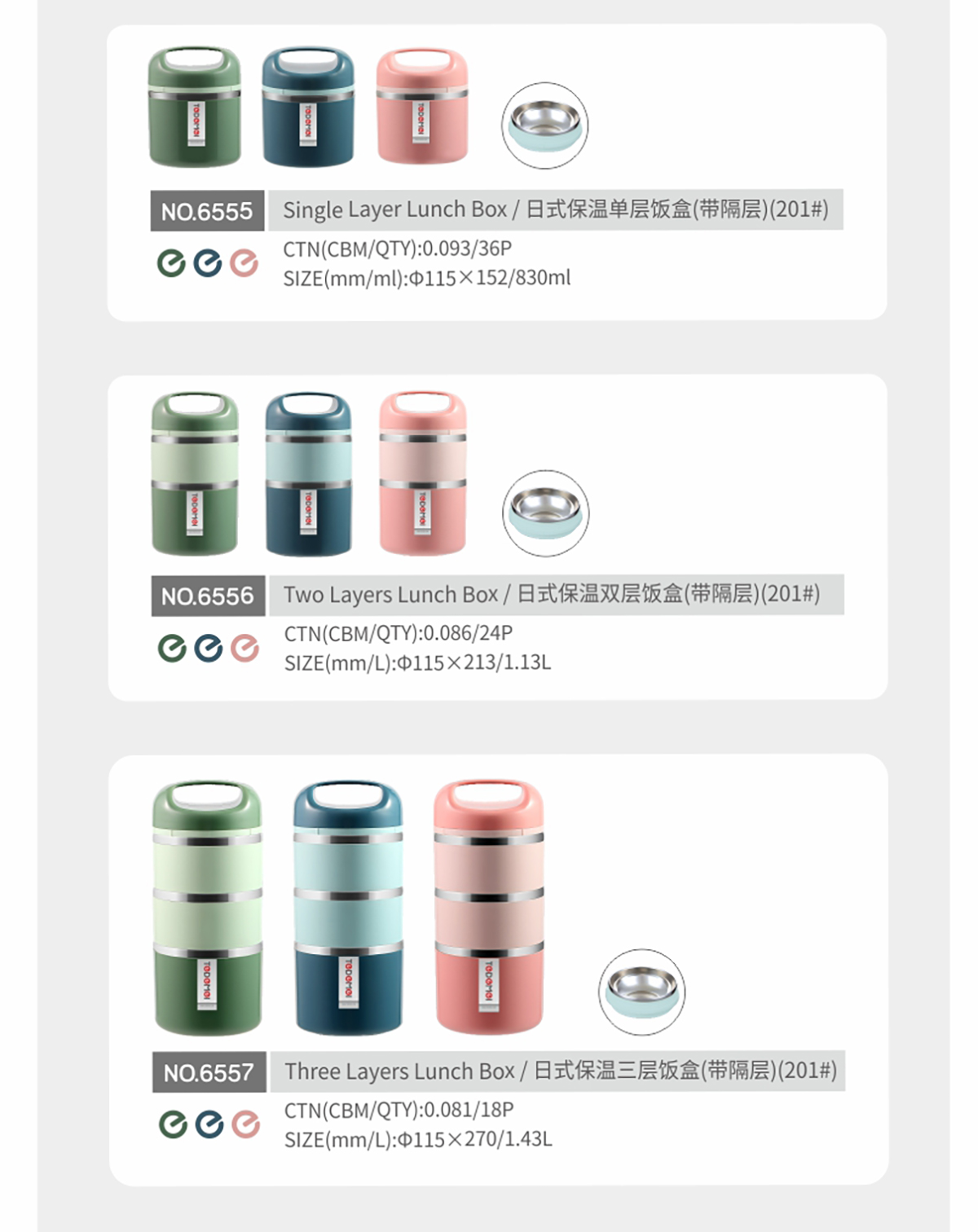 日式保溫單層/雙層/三層飯盒(帶隔層)