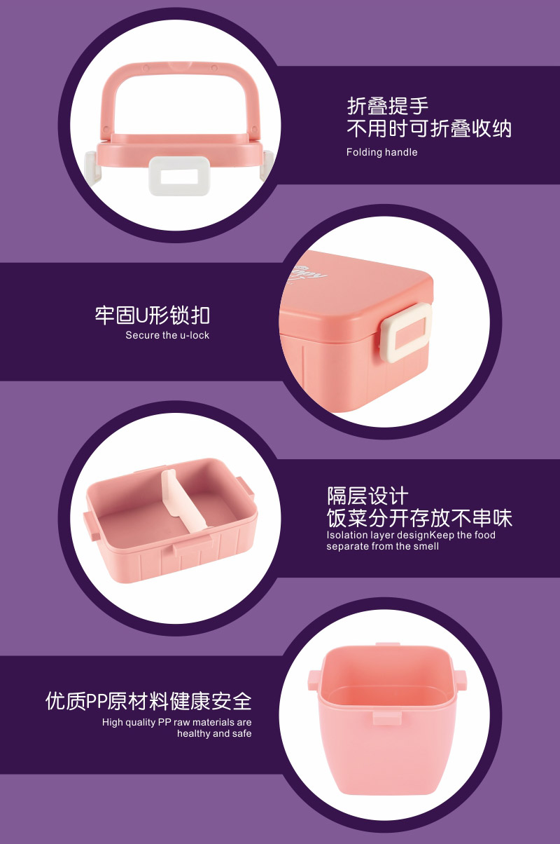 方扣分格飯盒600ml