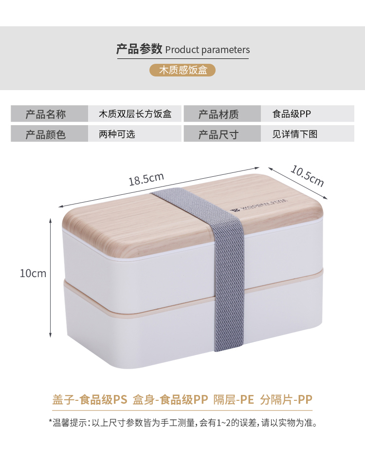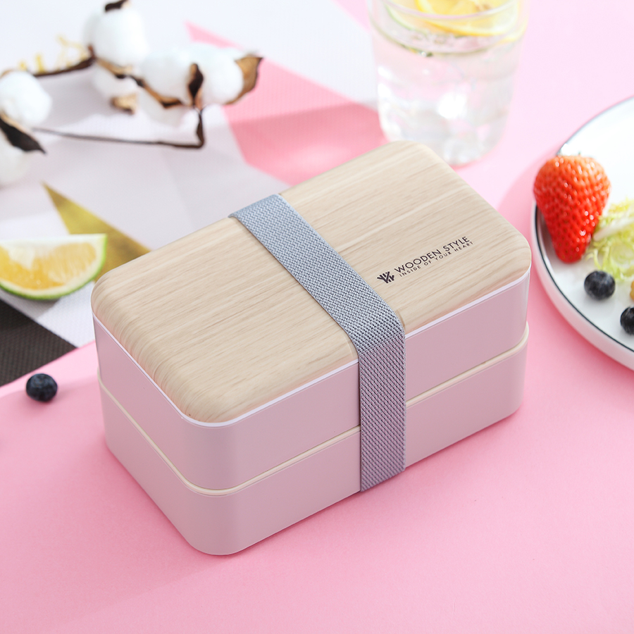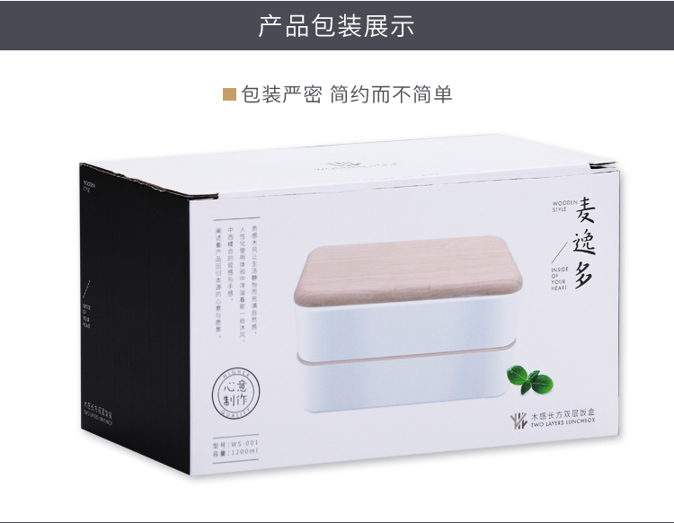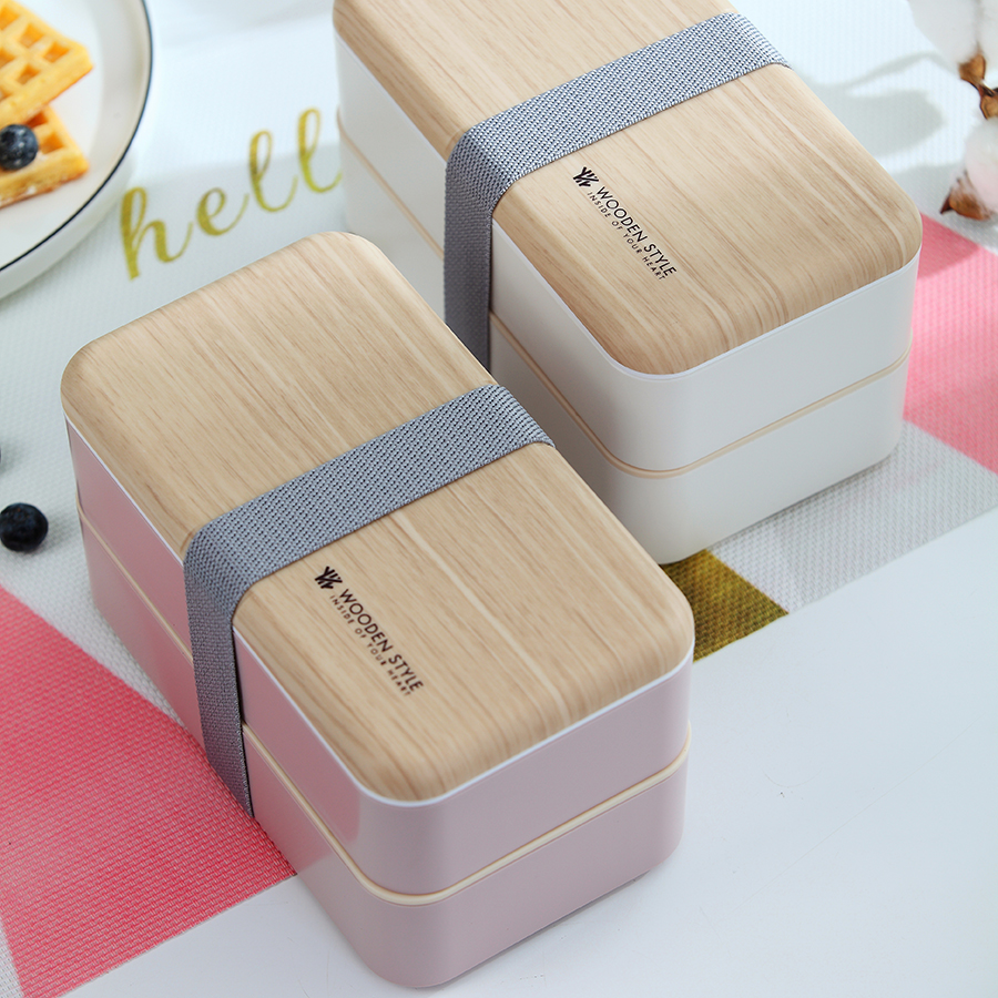 木感長(zhǎng)方雙層飯盒(定制款)