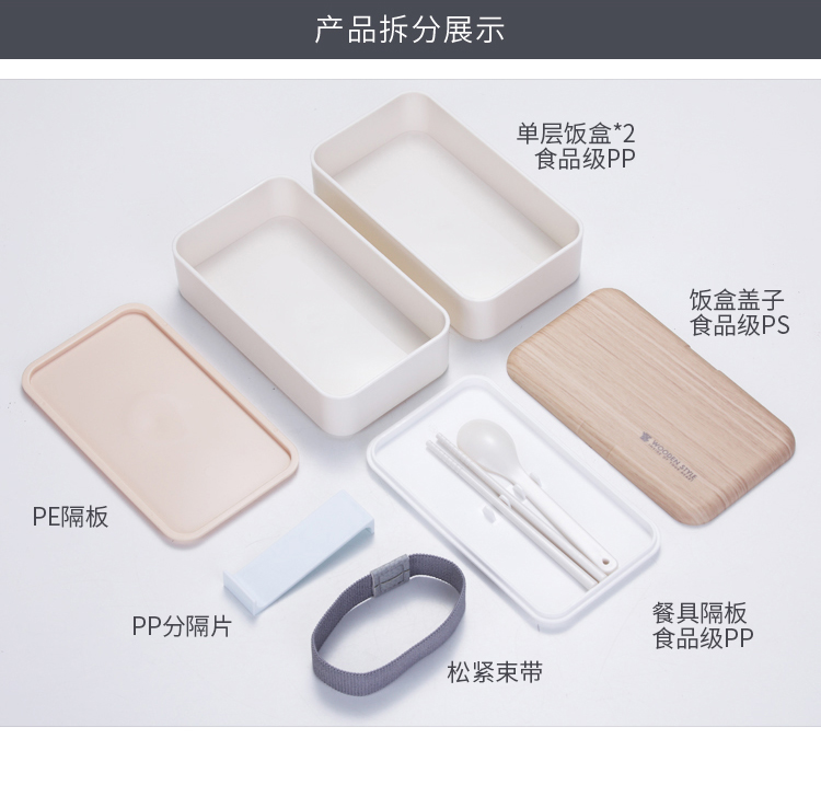 Stuff:蓋子、餐具PS+盒身PP+隔層PE+滌綸