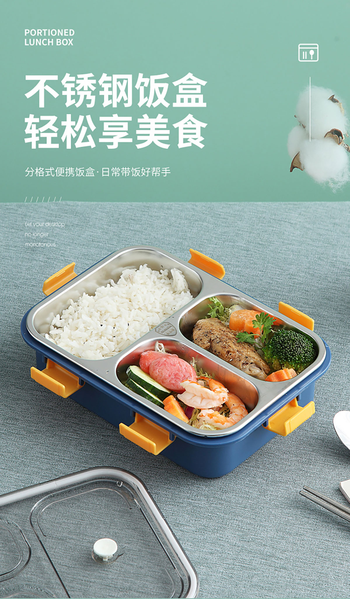 304不銹鋼飯盒(3格)(750ml)