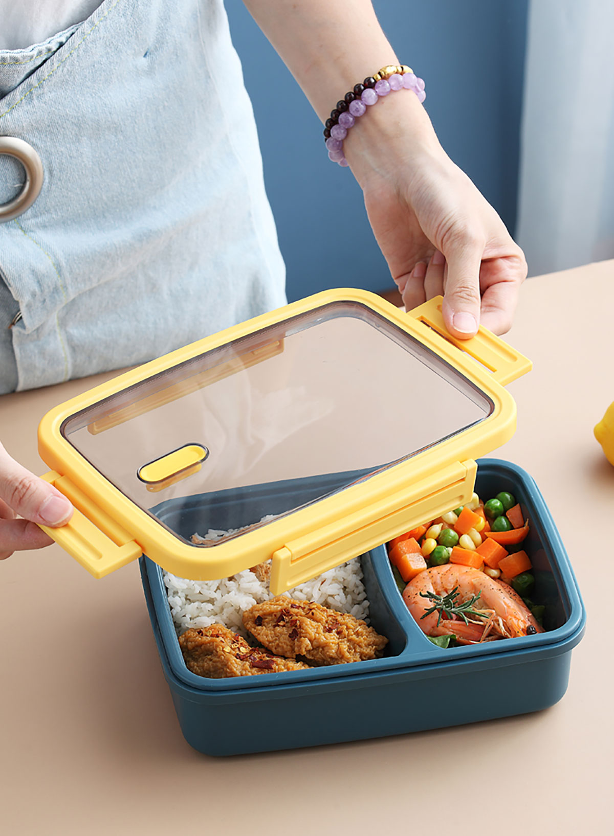 莫蘭迪長方雙格飯盒