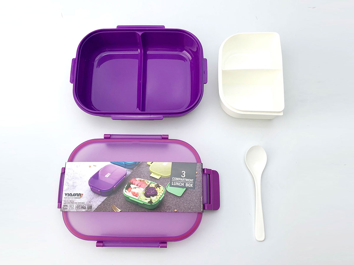 紋彩密封3格飯盒(長方形900ml)