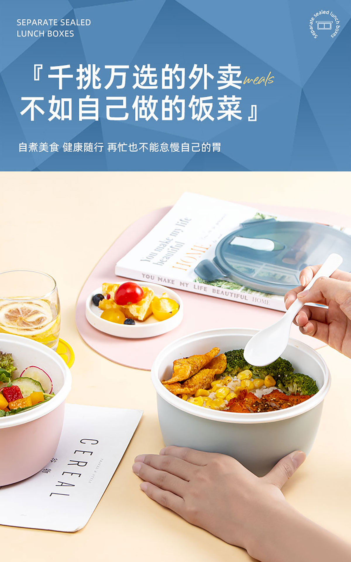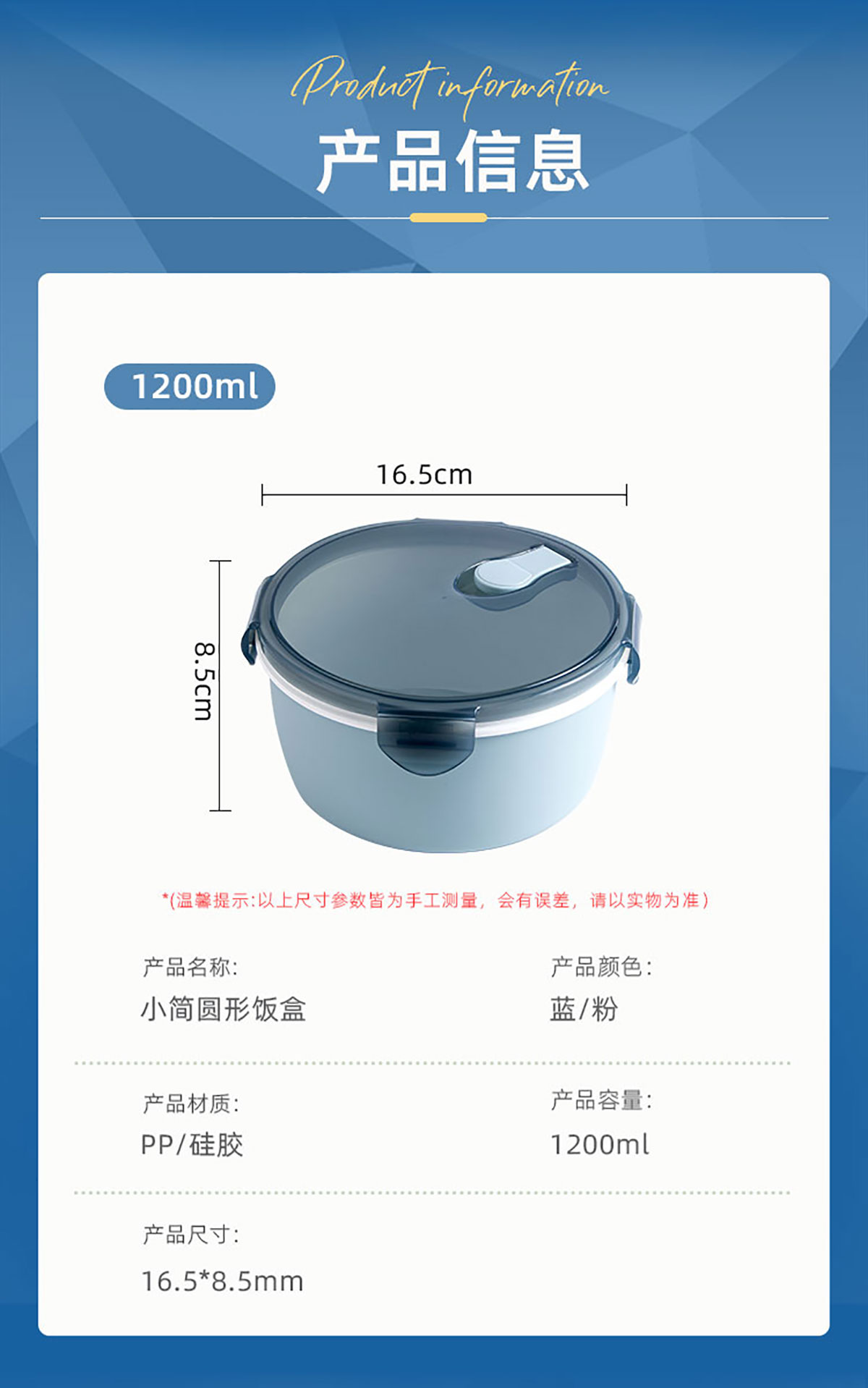小簡圓形抗菌飯盒1200ml