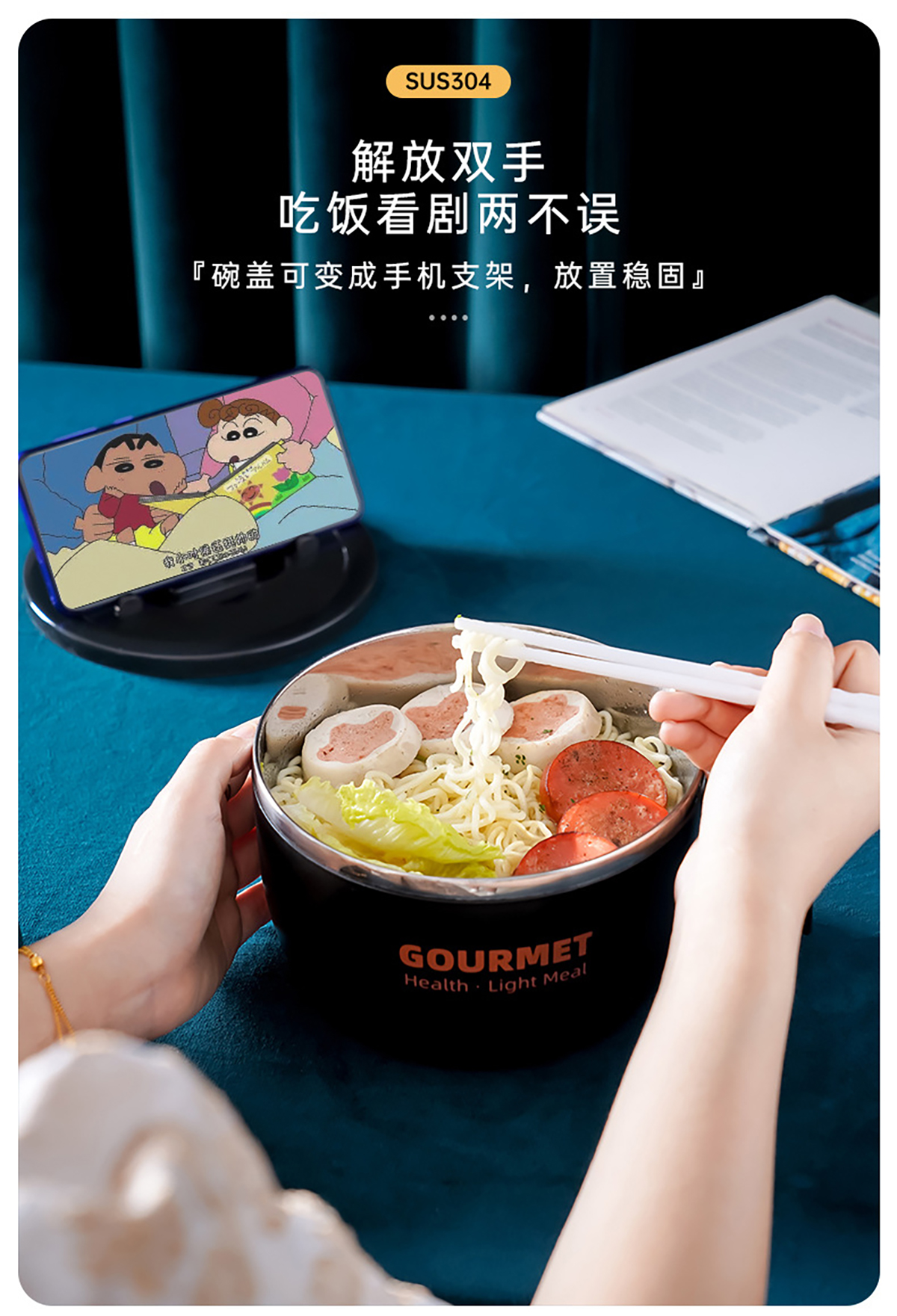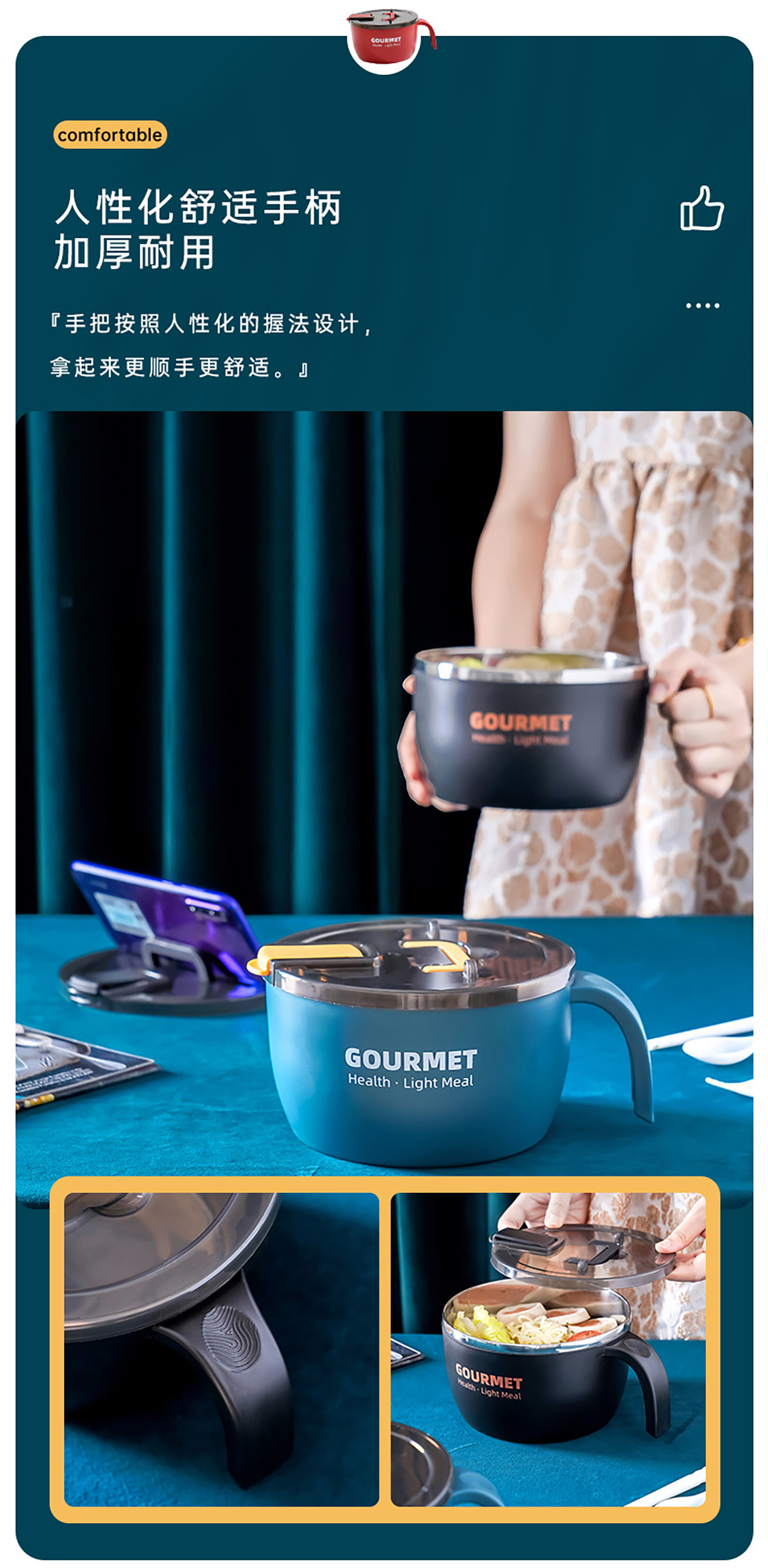 極味304泡面碗(含盒含餐具三件套)1300ml