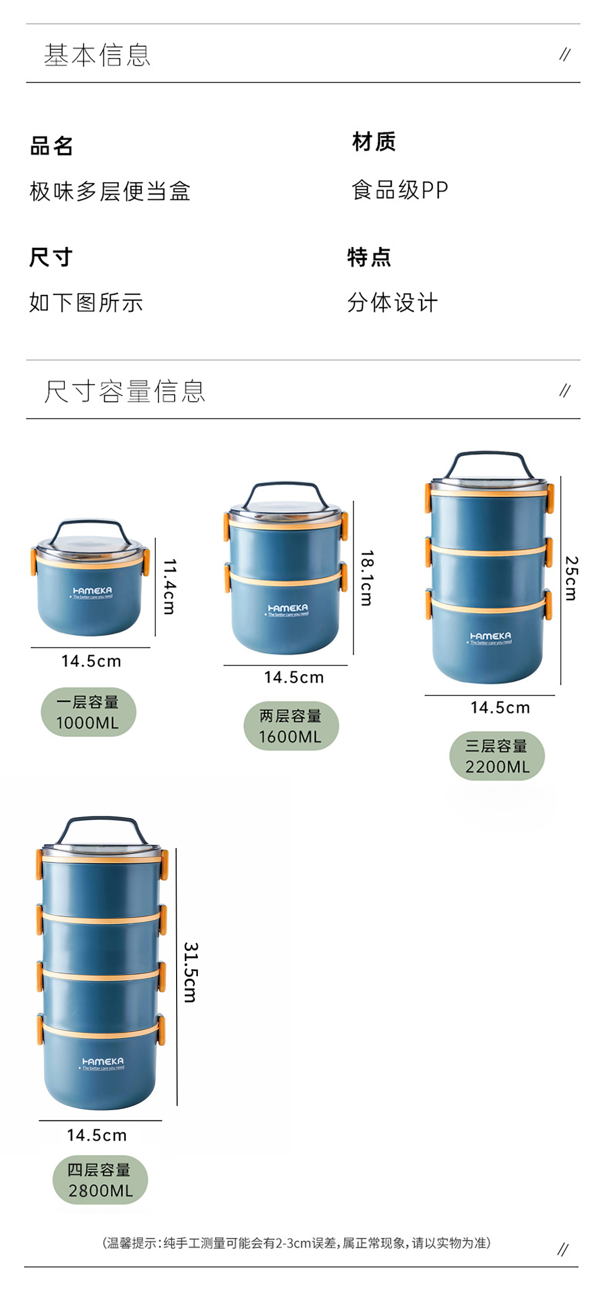Size: 單層:145*114mm/1000ml