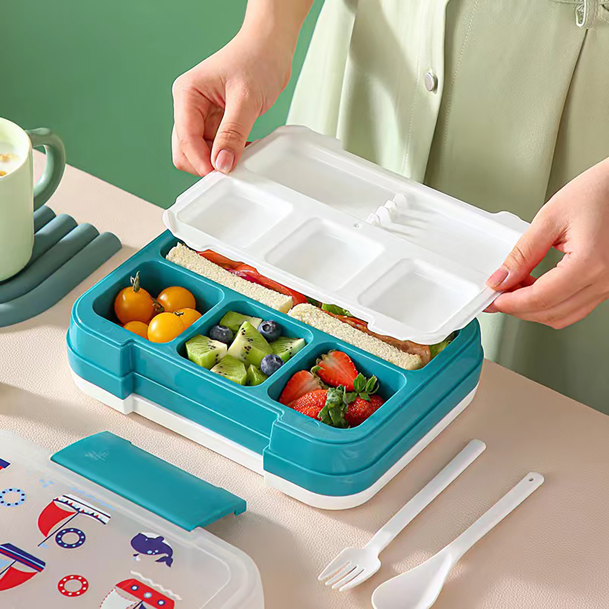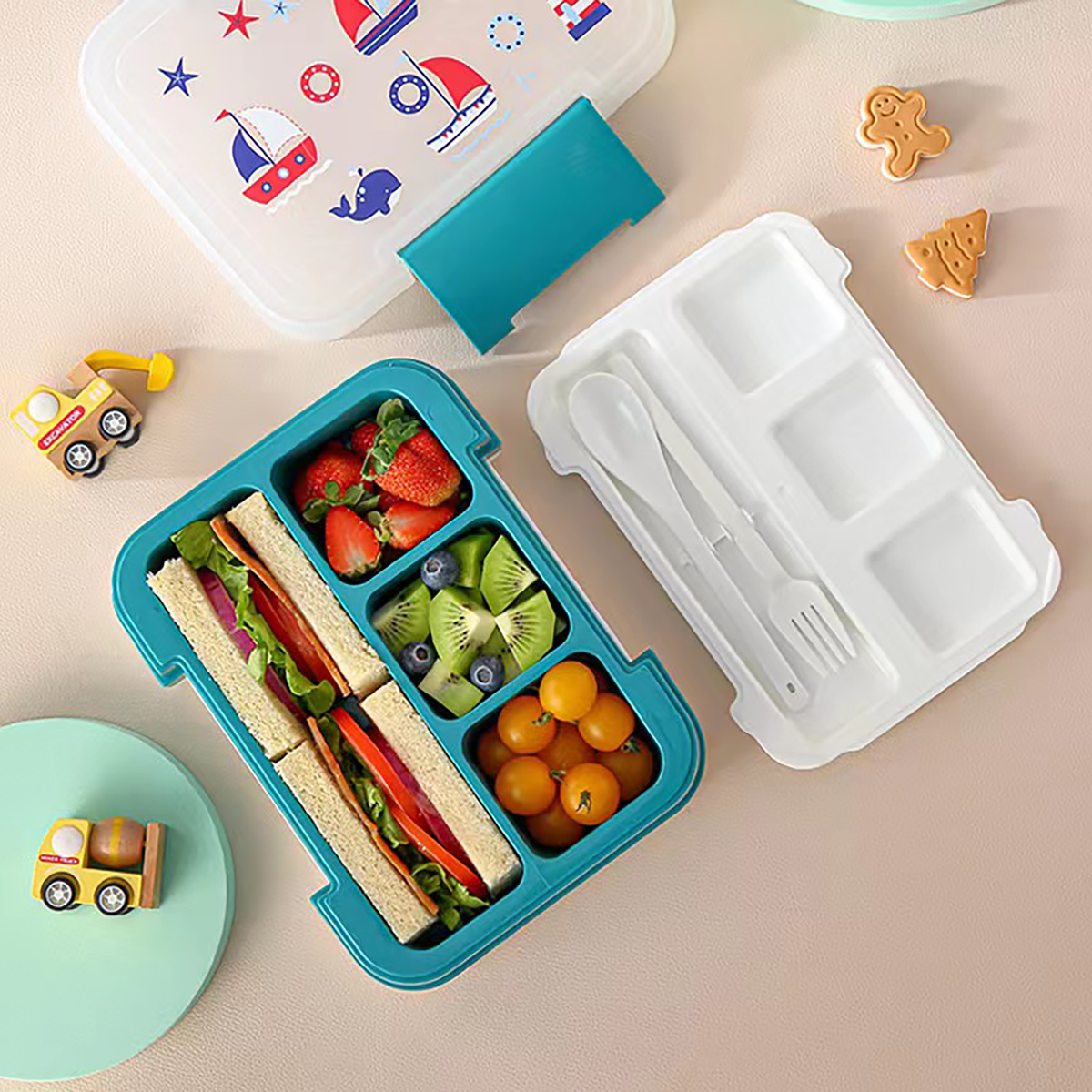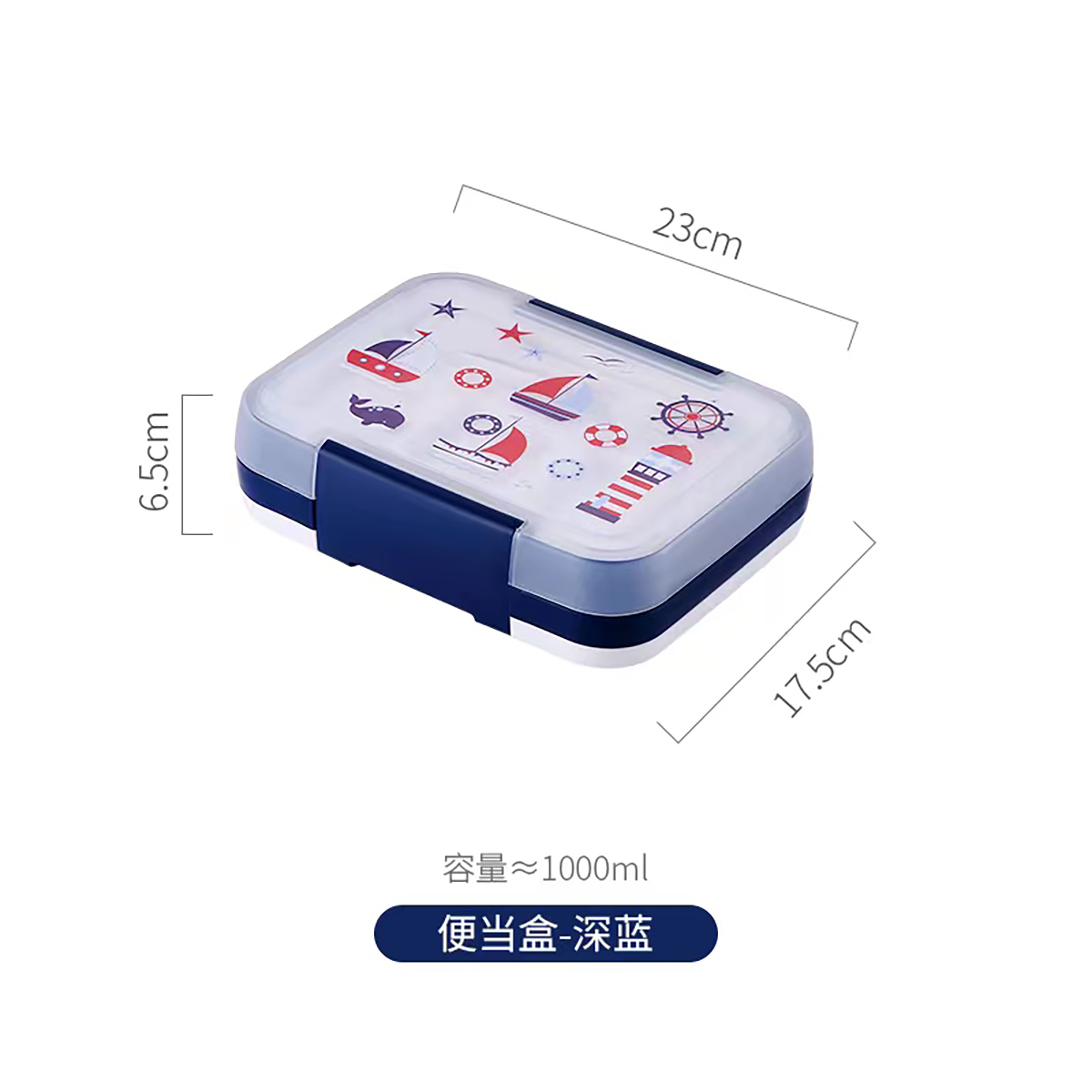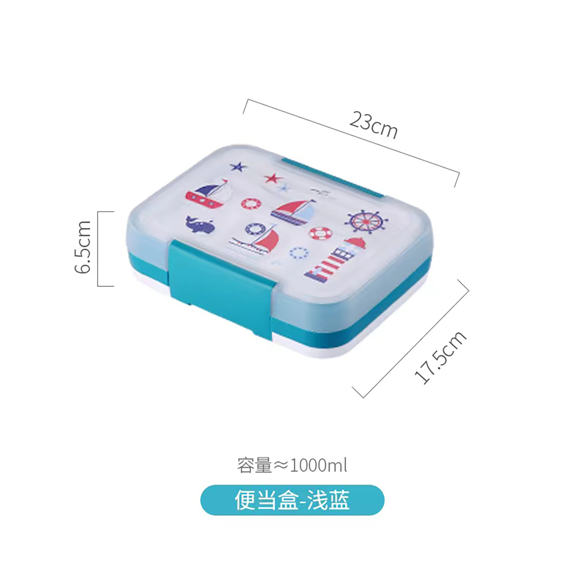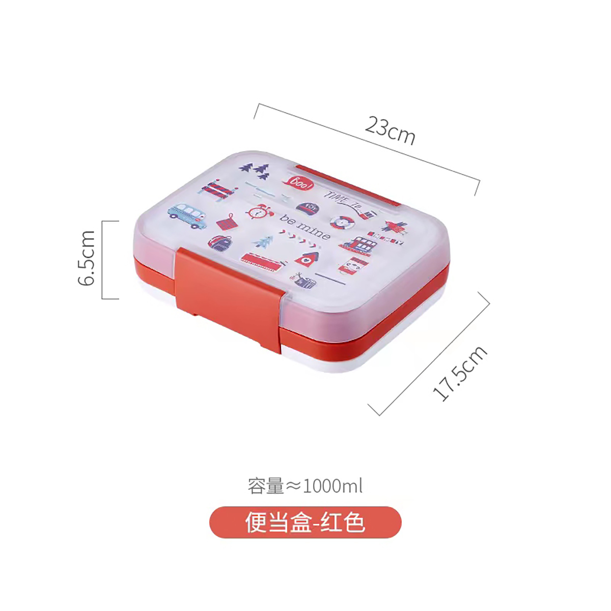 卡通四色長方形飯盒1500ml