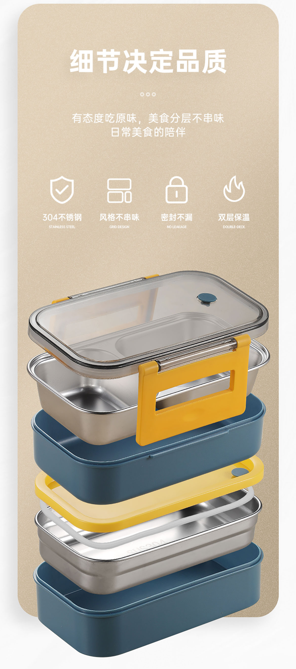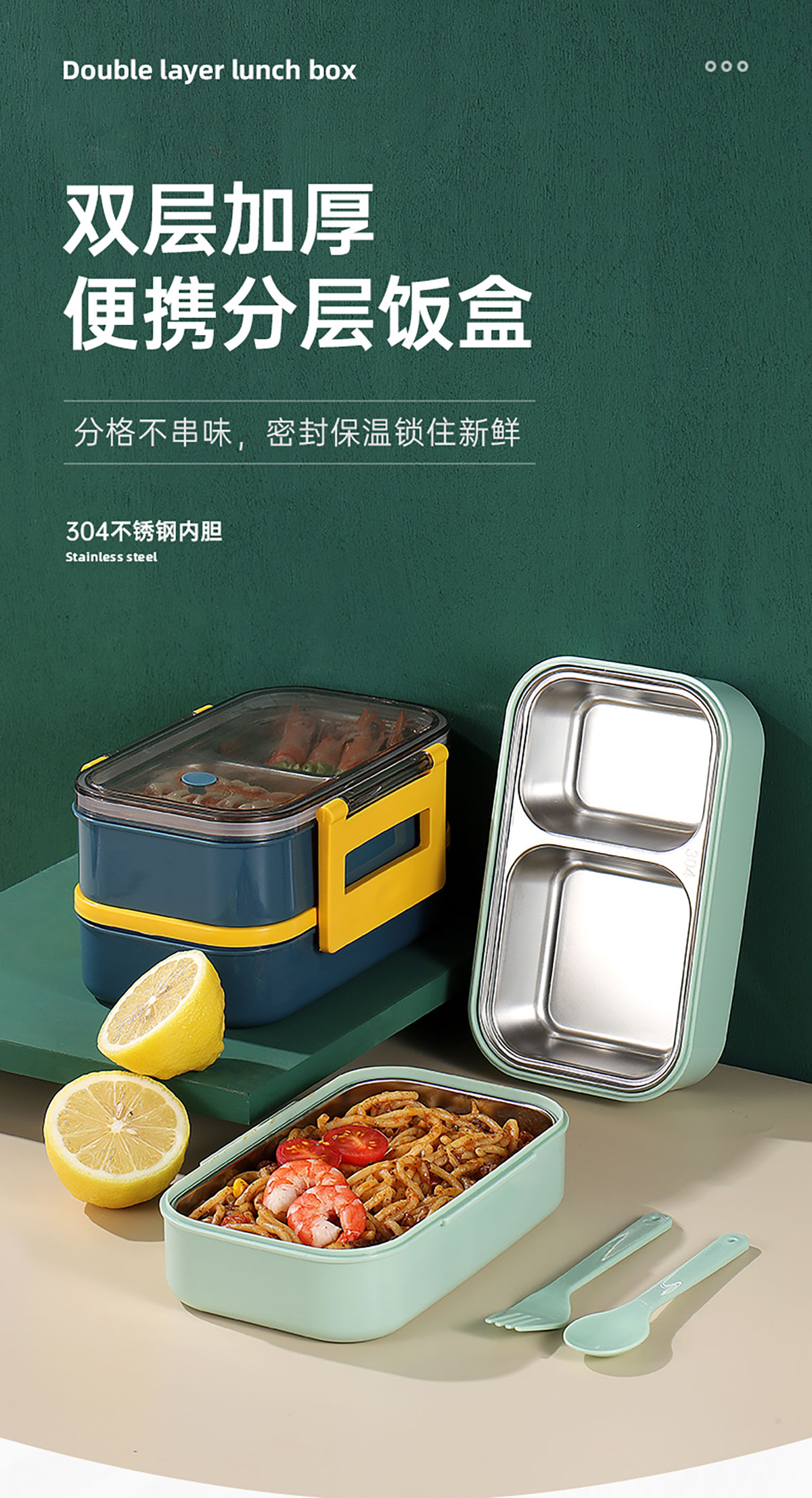 莫蘭迪雙層分格不銹鋼飯盒1000ml