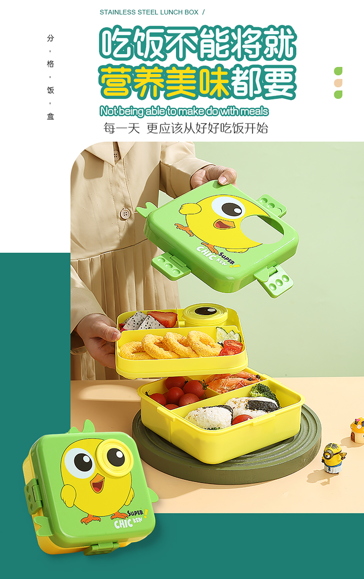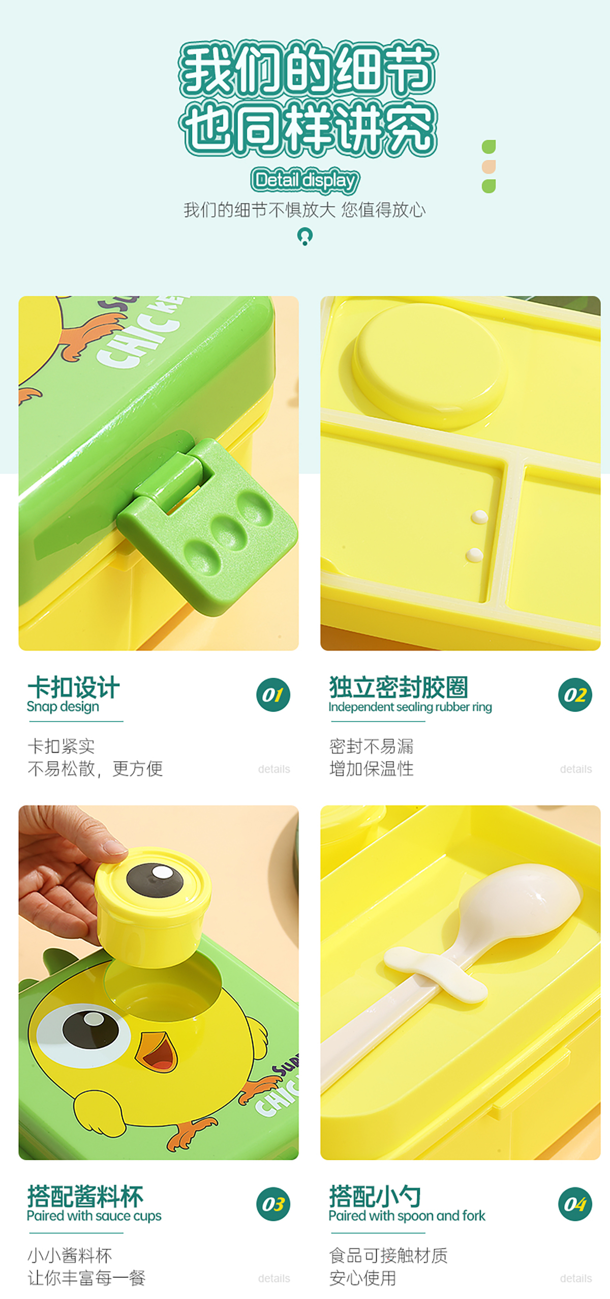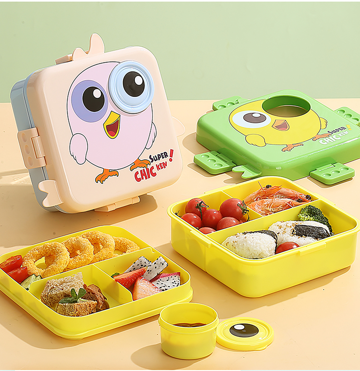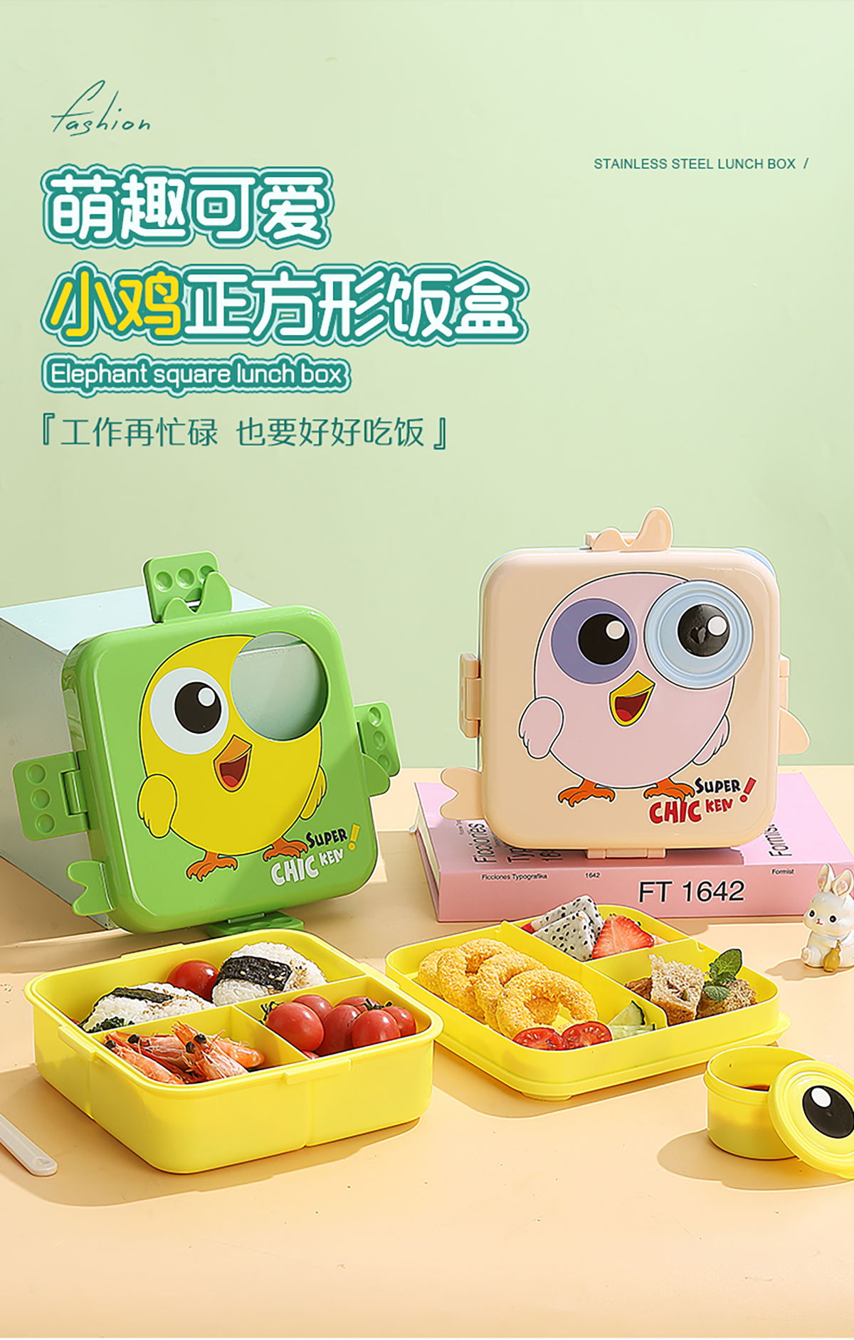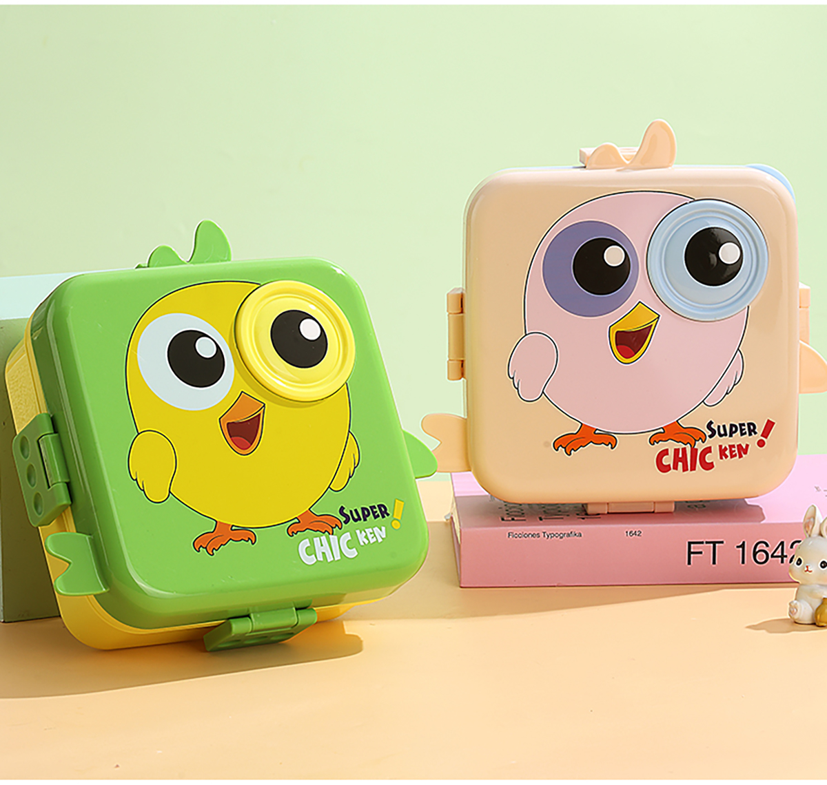 小雞正方形飯盒(塑料)1590ml+70ml