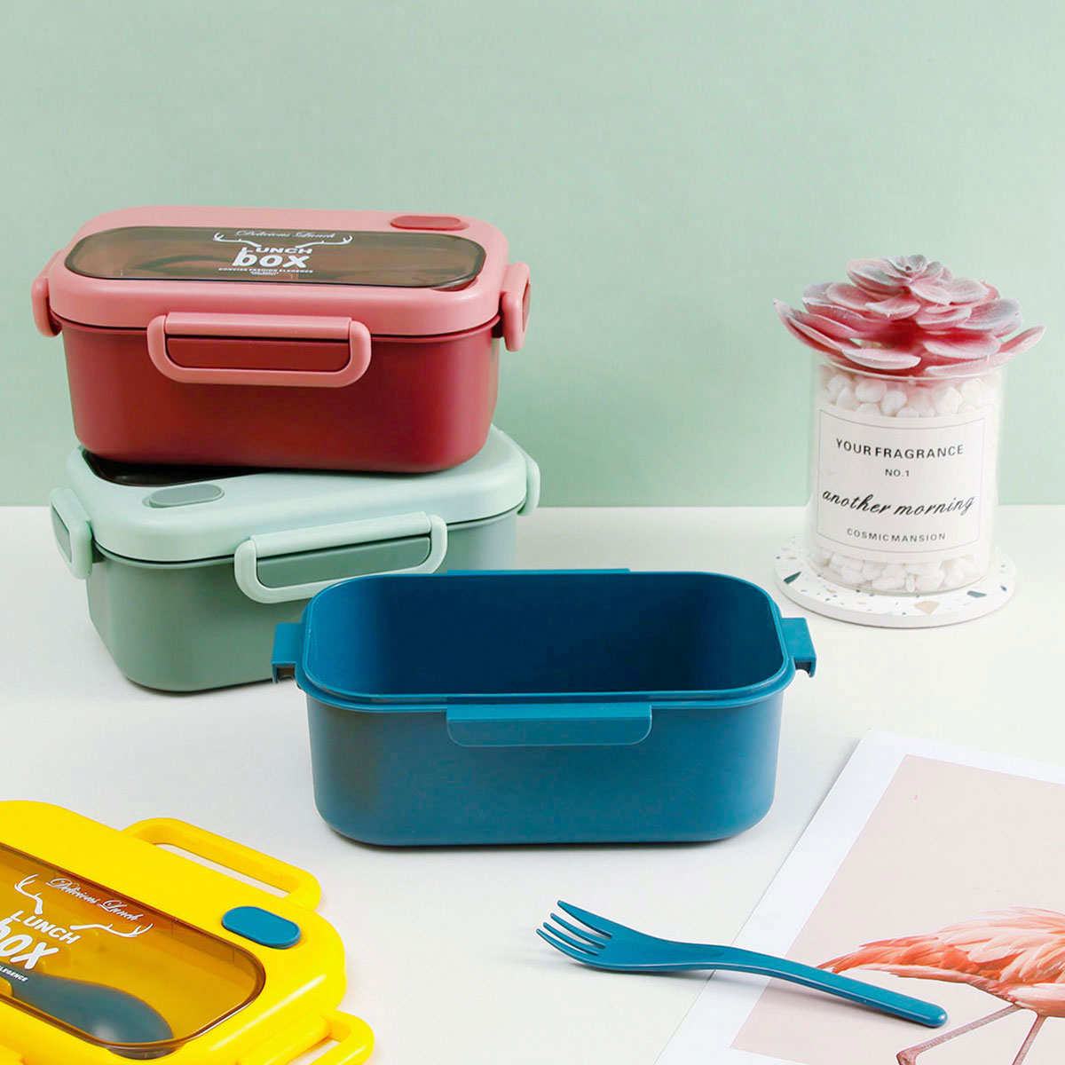 品悅長方單層密封飯盒(1000ml)+圓形/八角隨行杯(500ml)