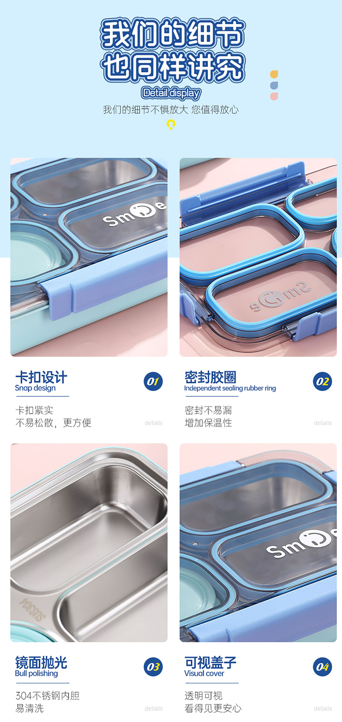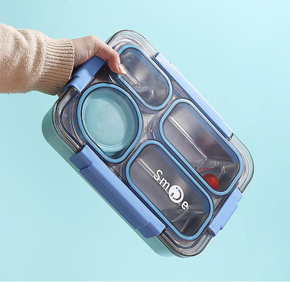900ml獨(dú)立密封不銹鋼餐盒(4格+PP碗150ml+不銹鋼勺筷)