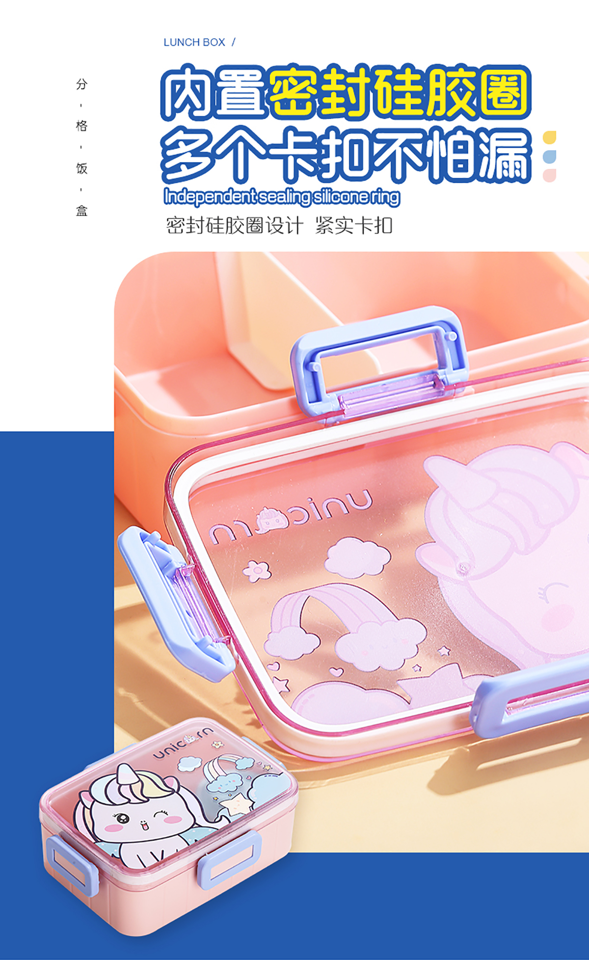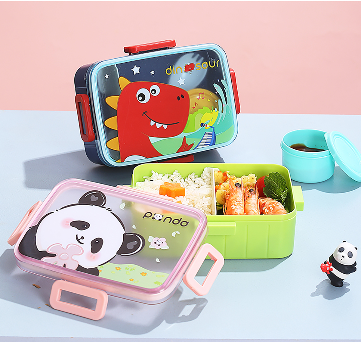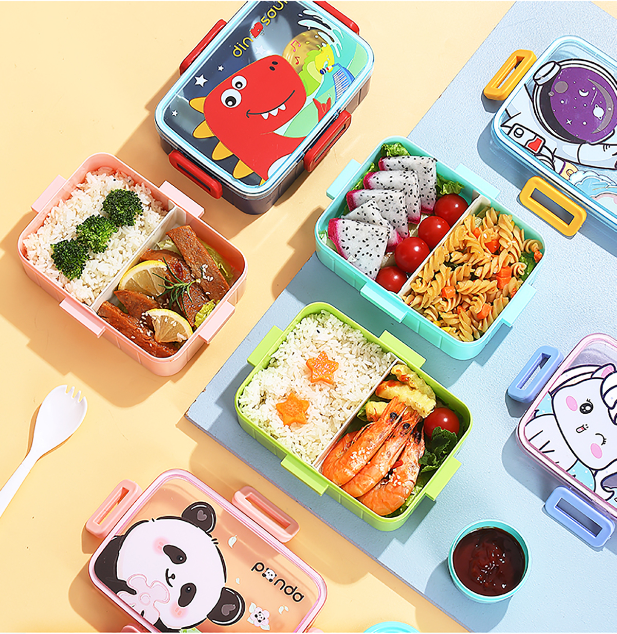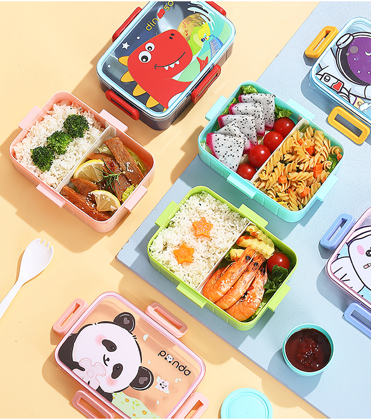 萌趣卡通塑料飯盒(1格600ml+沙拉杯80ml+PP勺子)