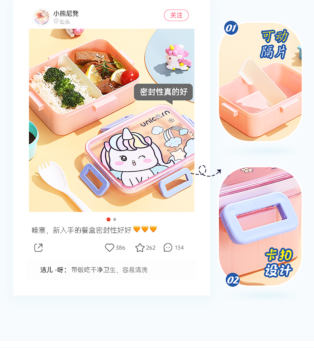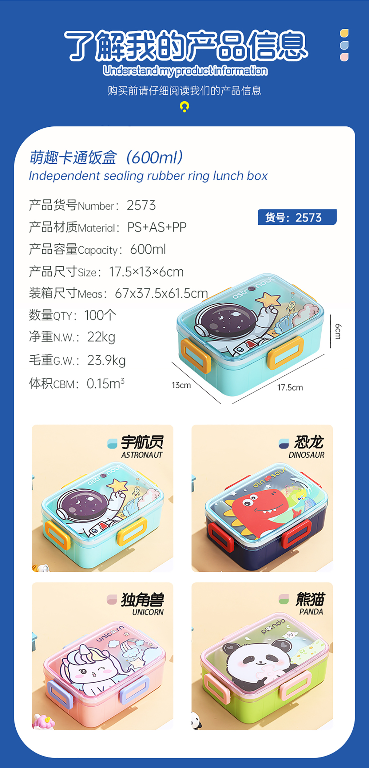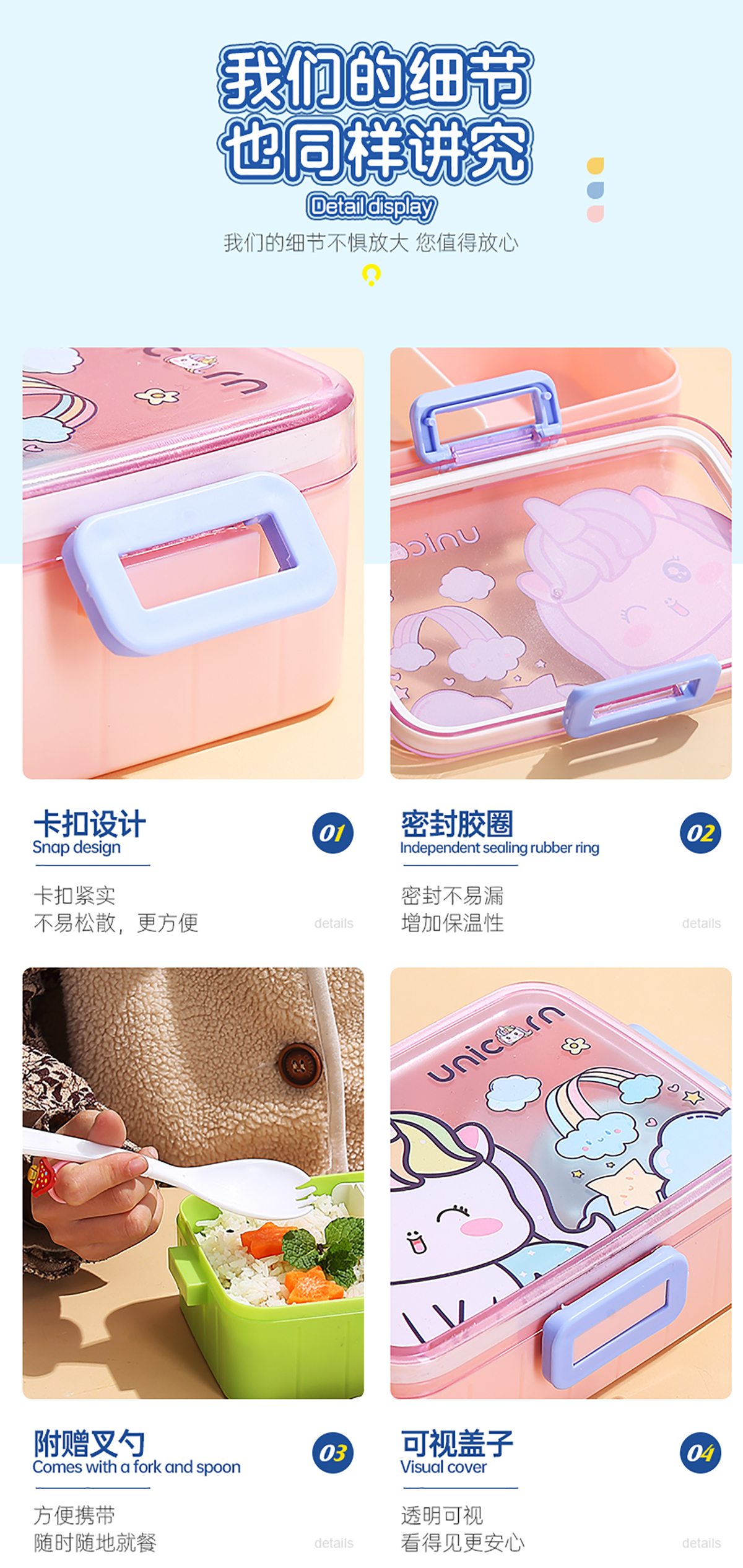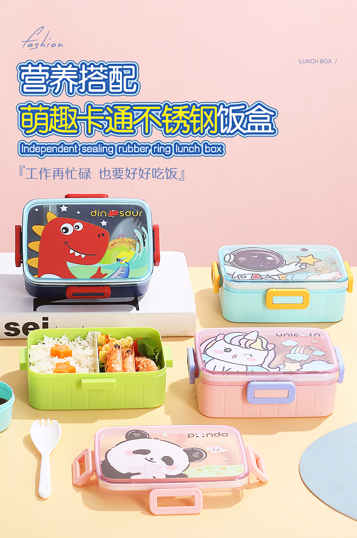 萌趣卡通塑料飯盒(1格600ml+沙拉杯80ml+PP勺子)