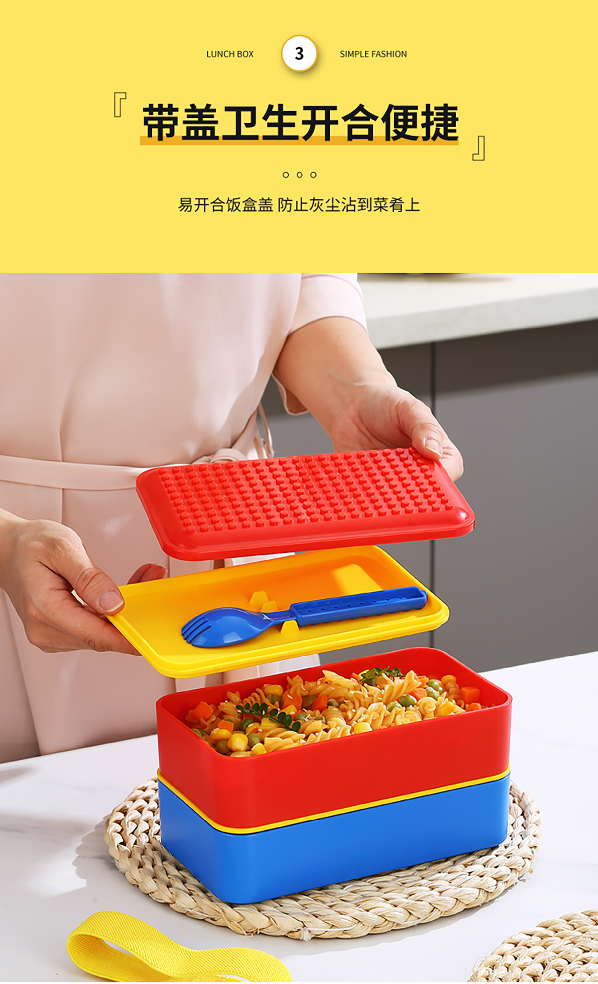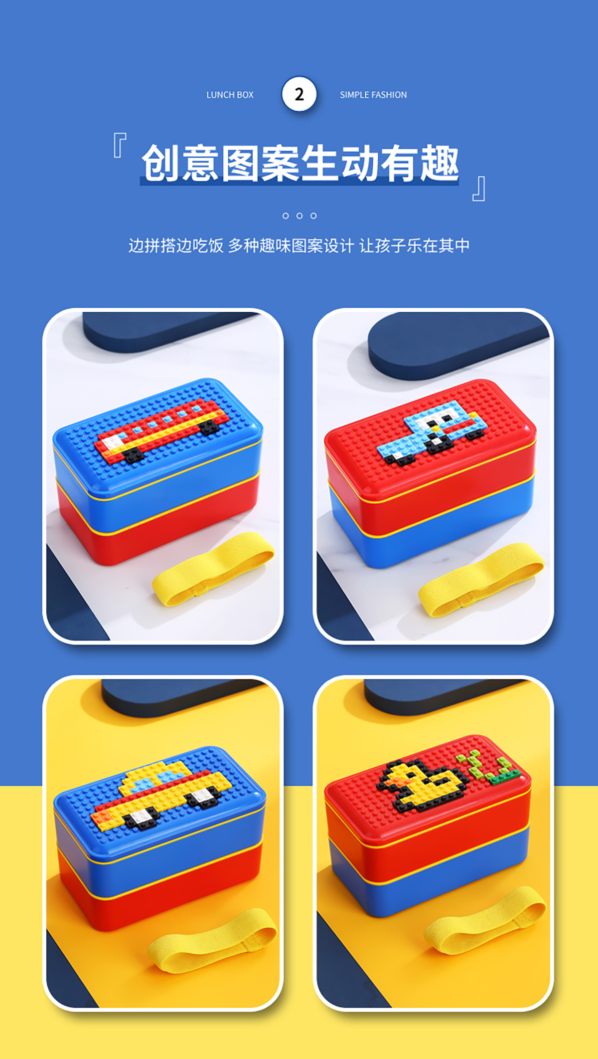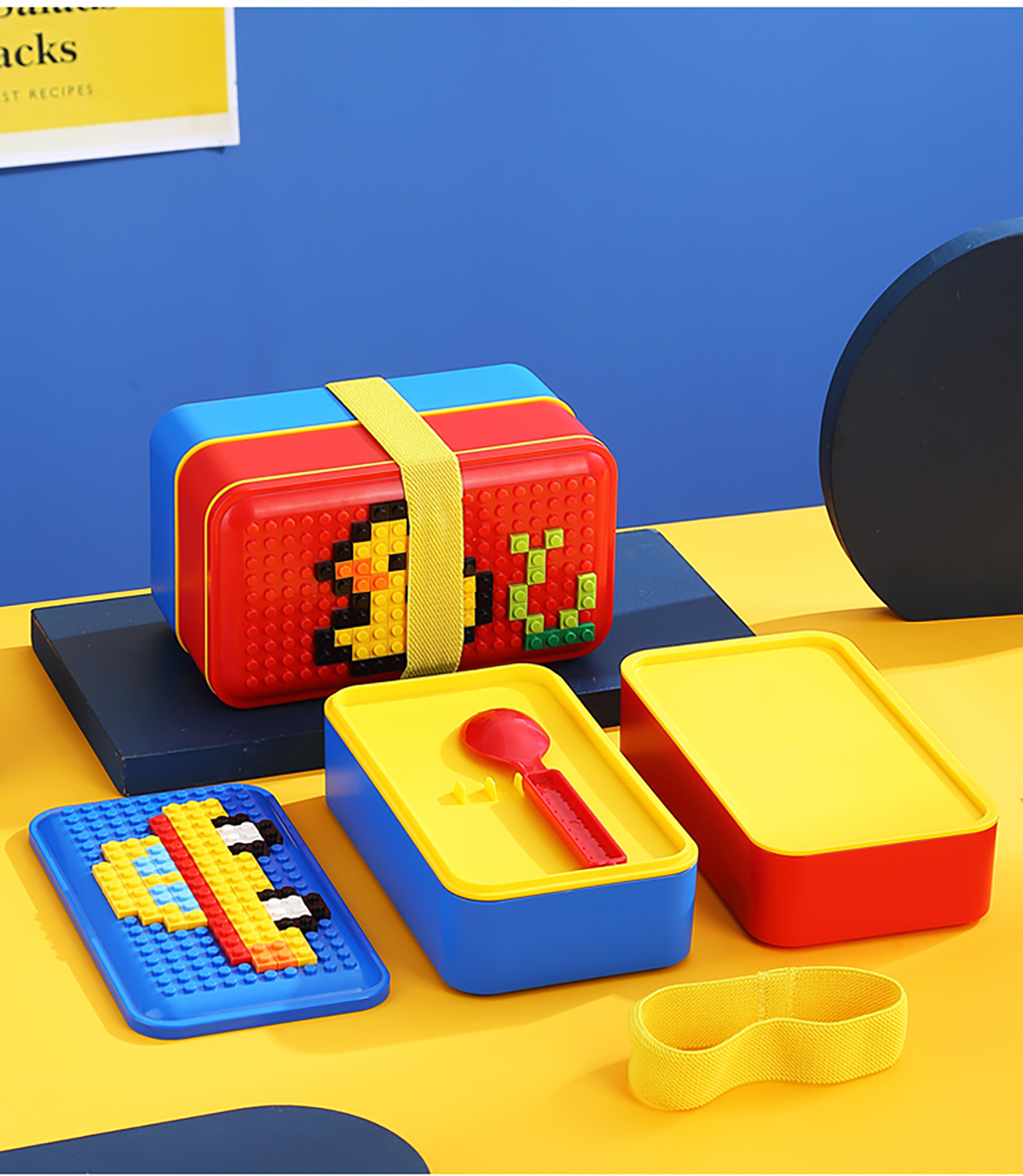 積木長方雙層綁帶飯盒1000ml