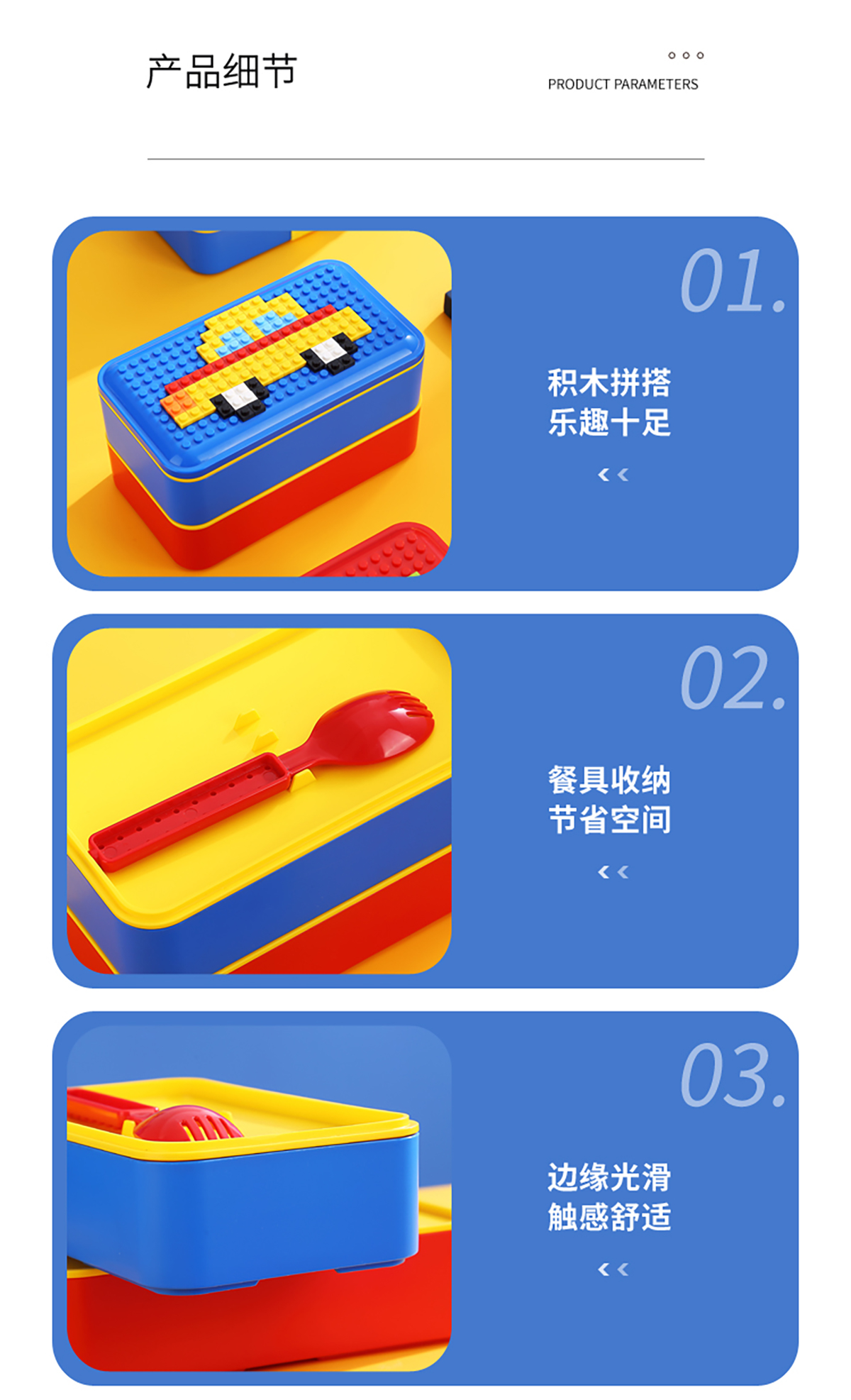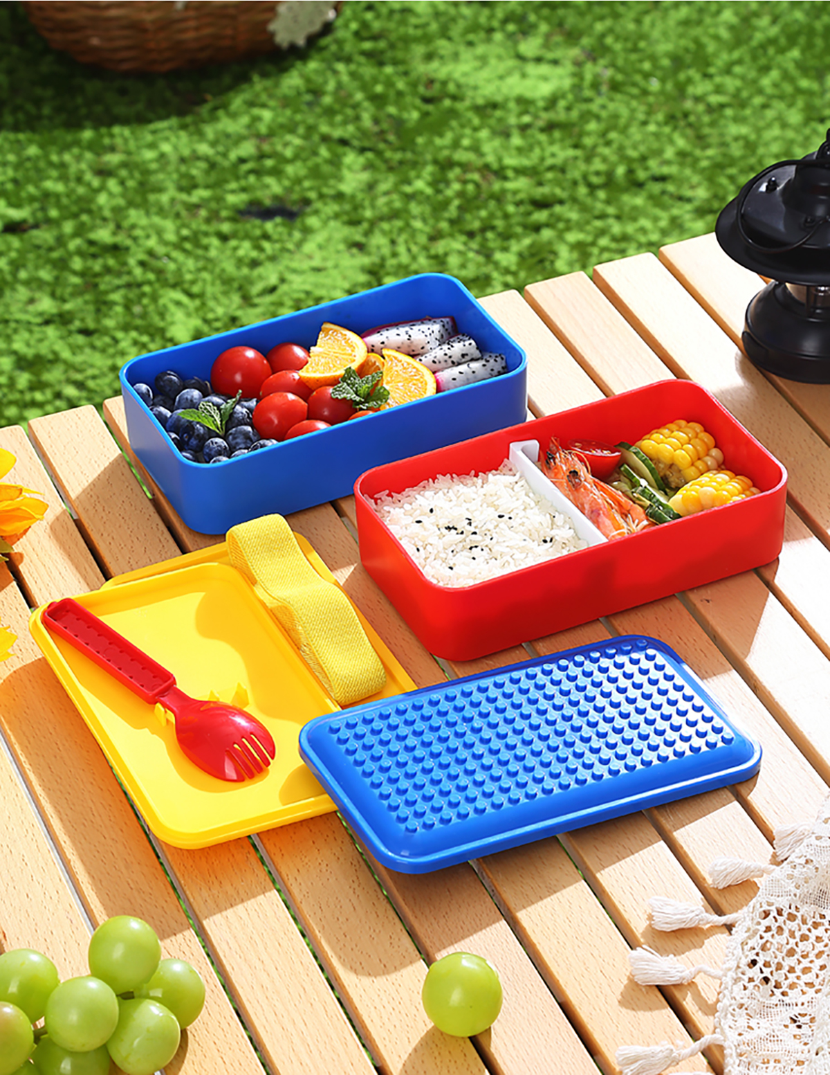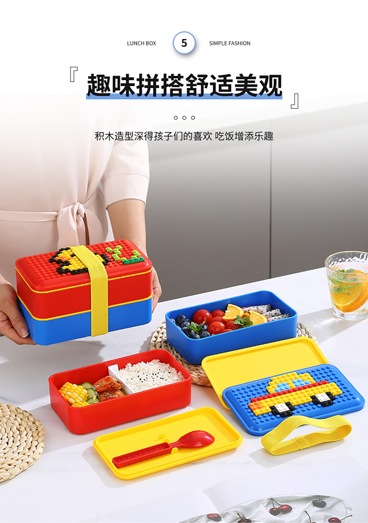 積木長方雙層綁帶飯盒1000ml