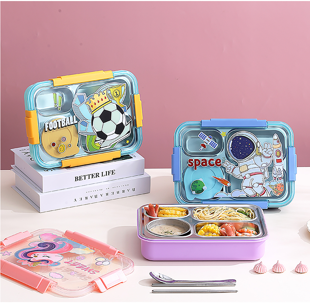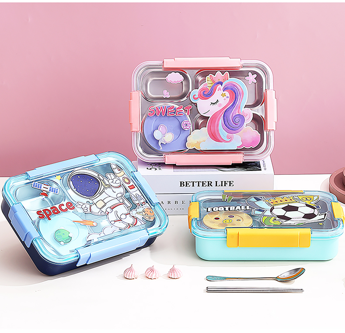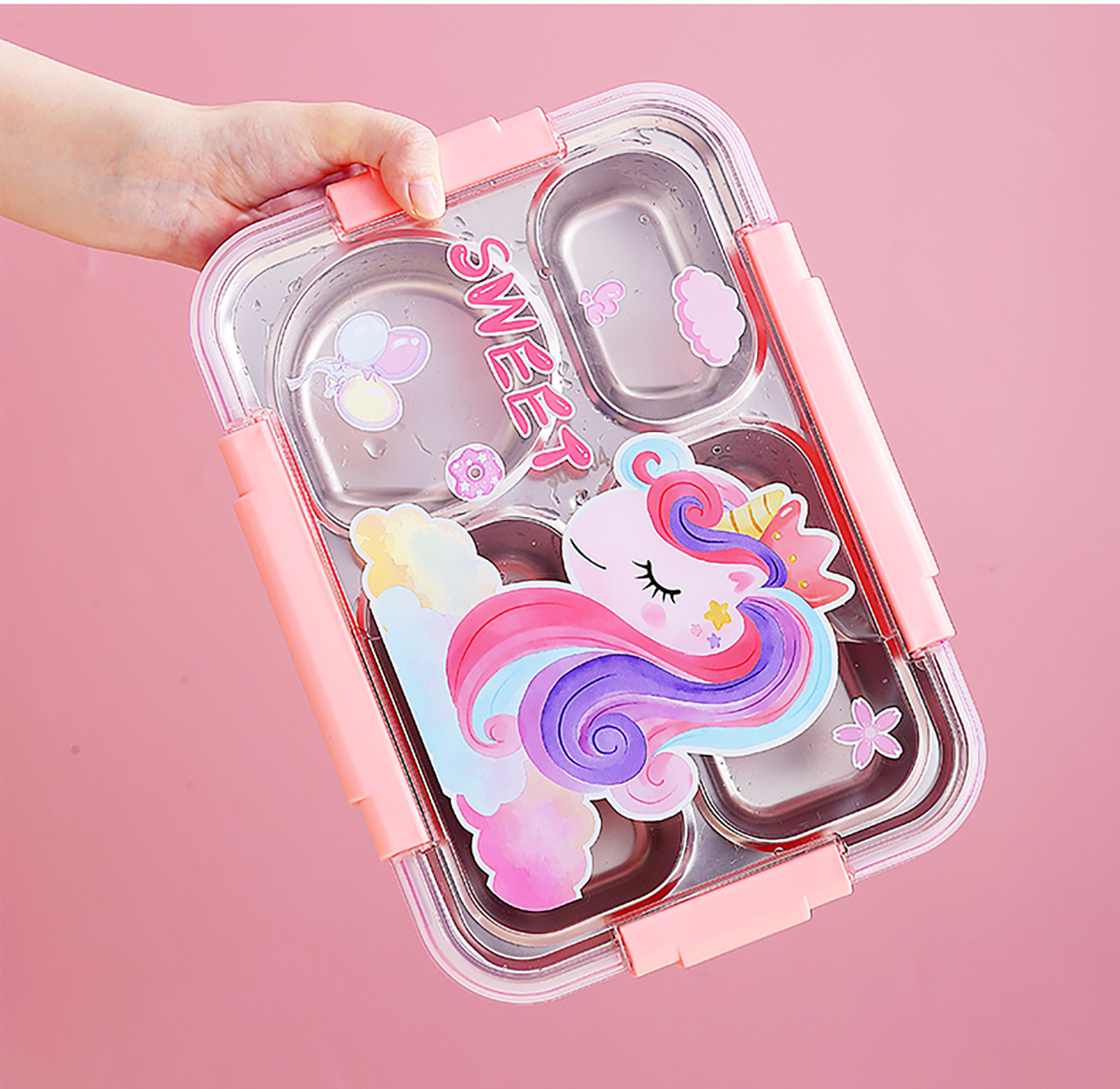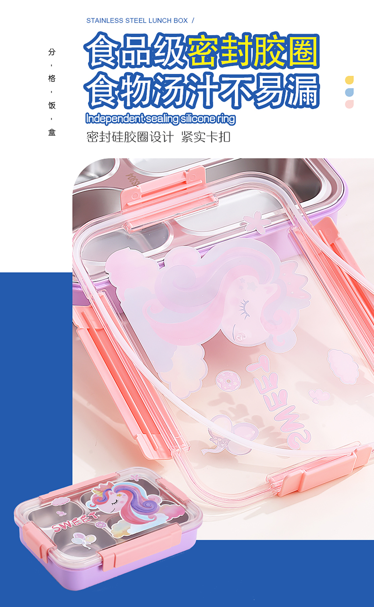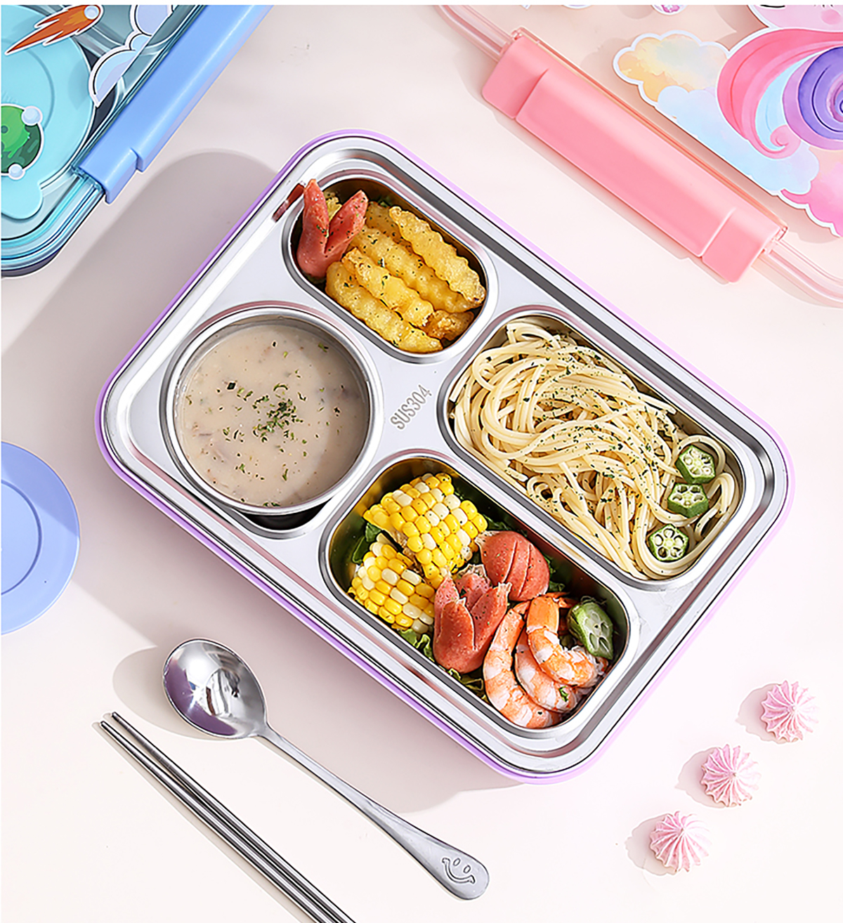 幻彩卡通密封不銹鋼餐盒(4格900ml/4格900ml+碗150ml+不銹鋼筷勺)