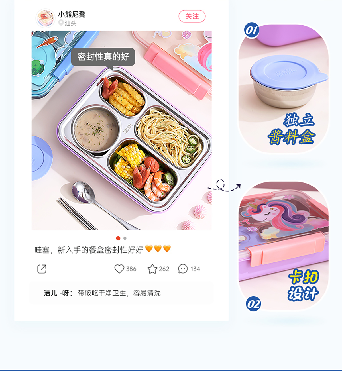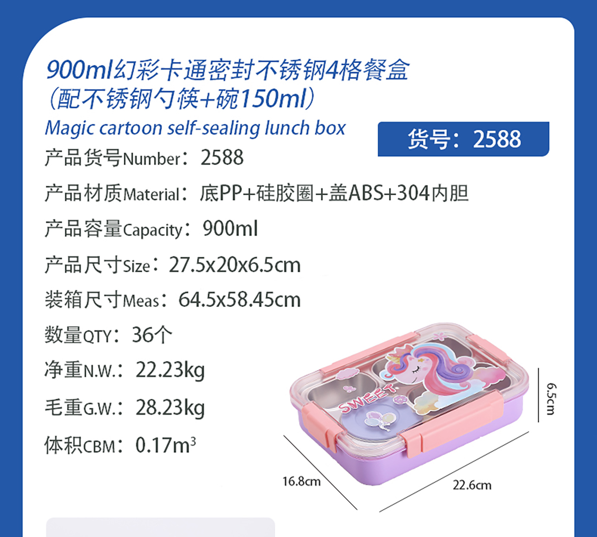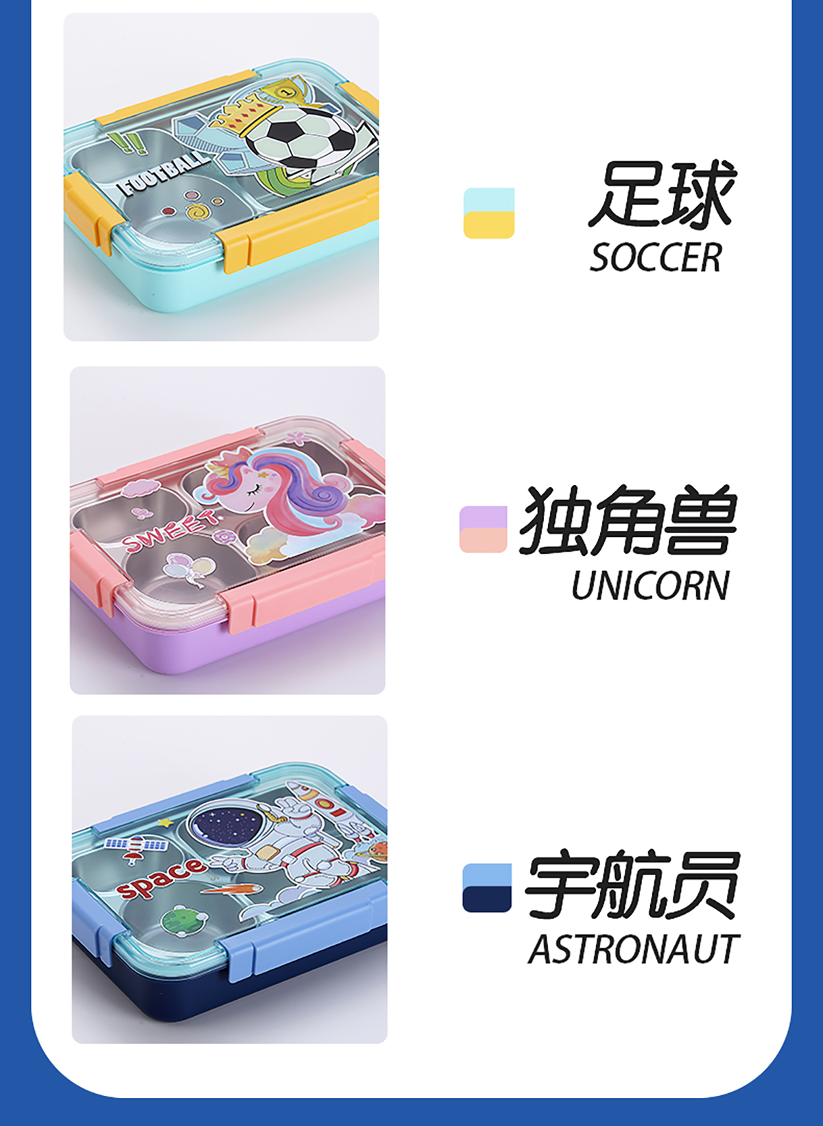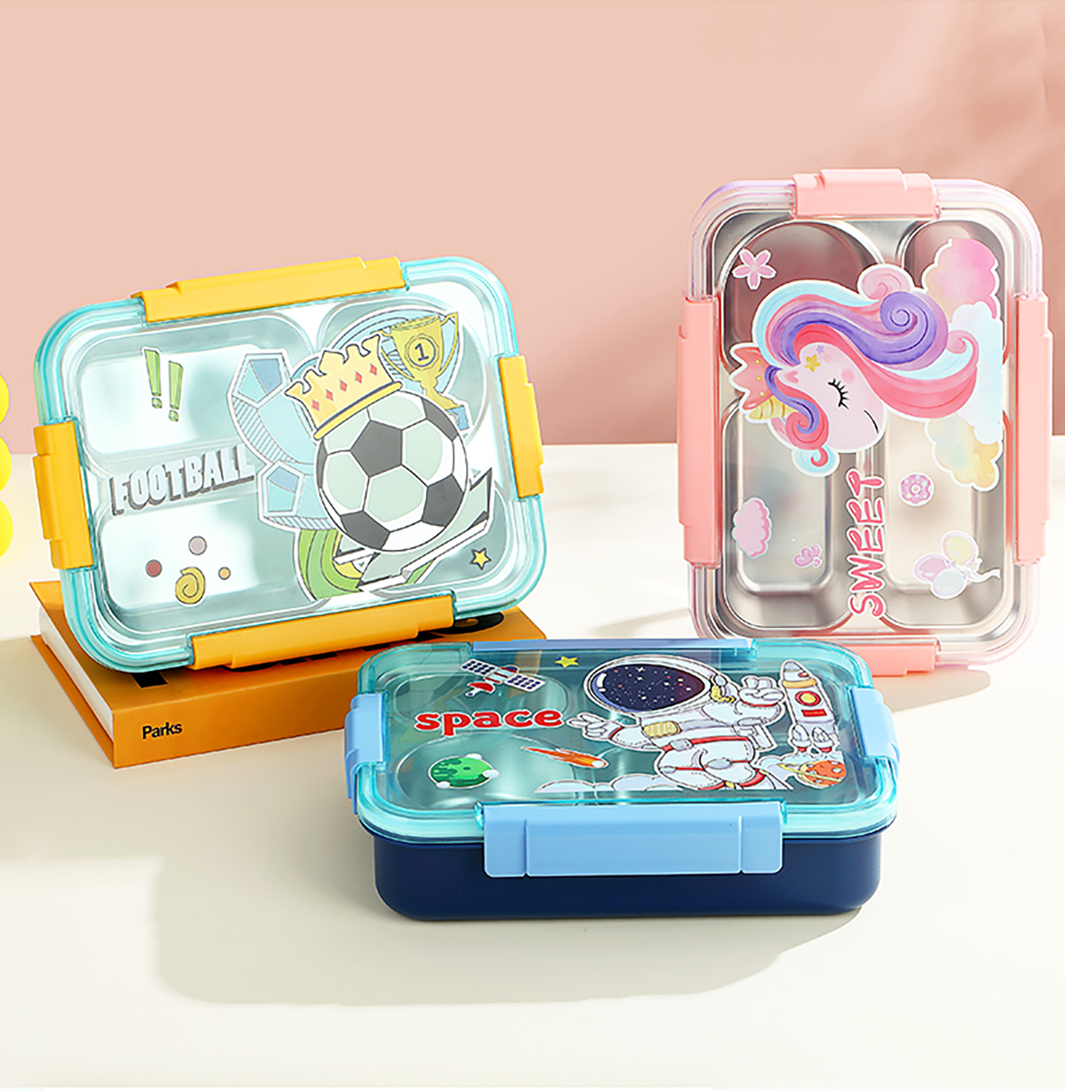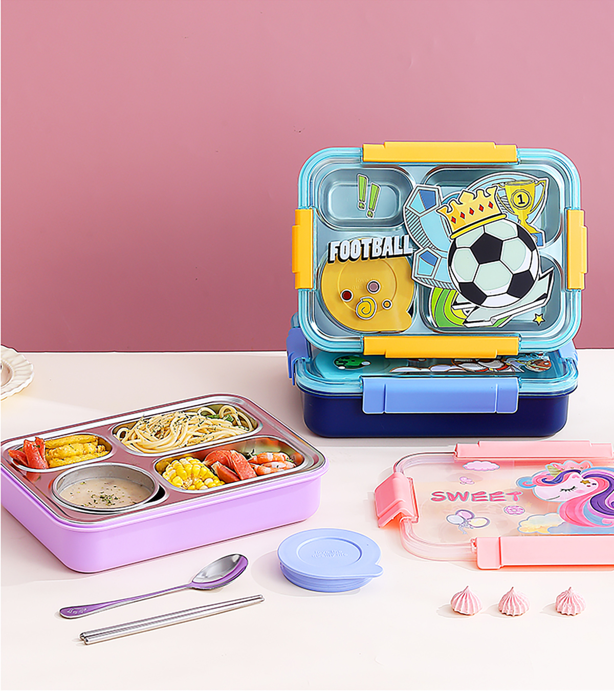 幻彩卡通密封不銹鋼餐盒(4格900ml/4格900ml+碗150ml+不銹鋼筷勺)