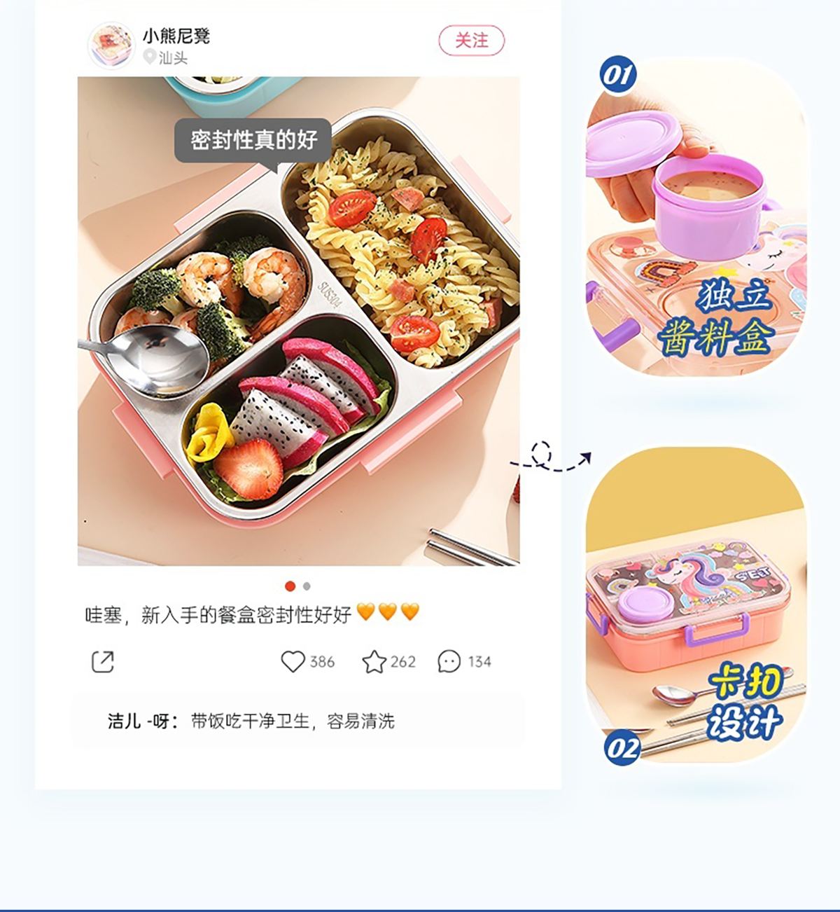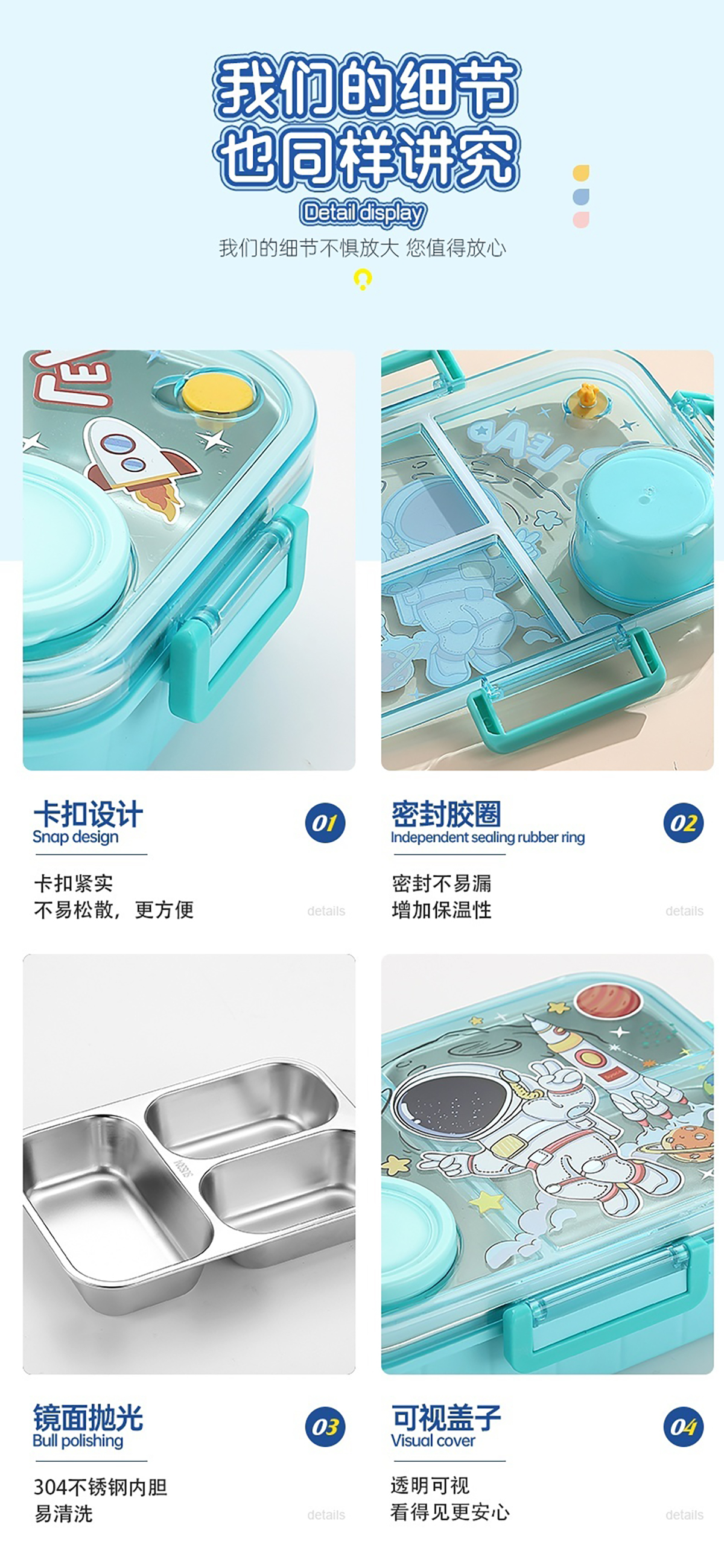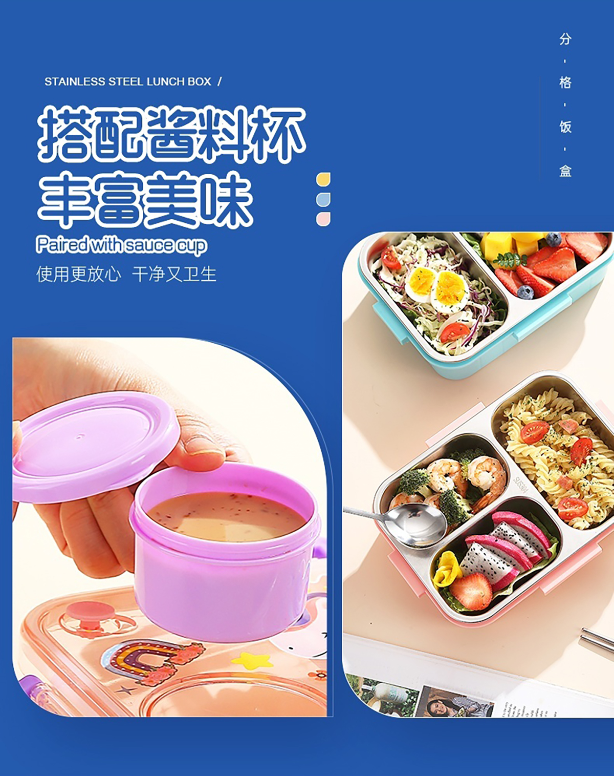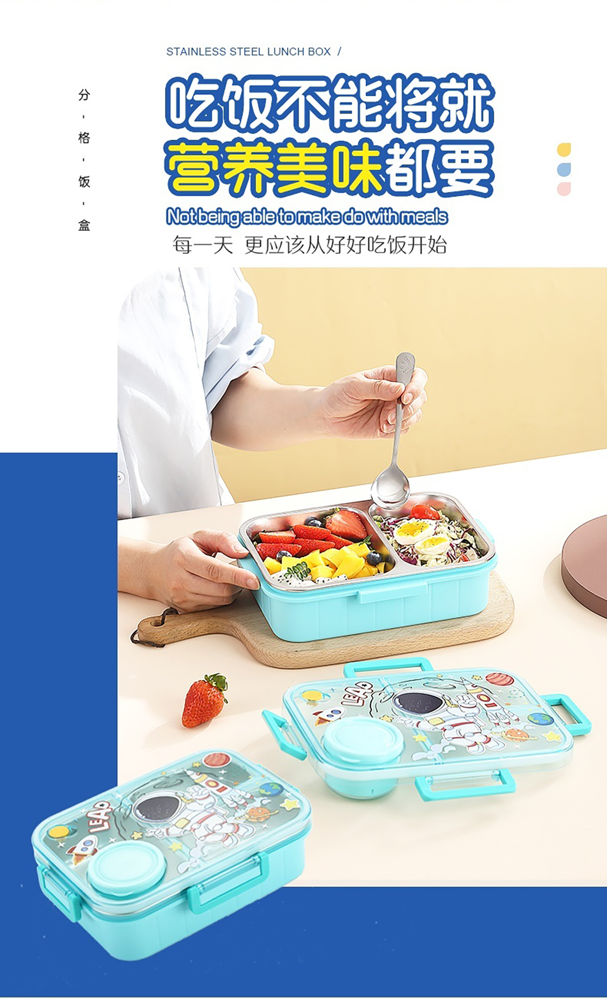 幻彩卡通獨立密封餐盒(2格800ml/3格750ml配不銹鋼勺筷+PP醬杯80ml)