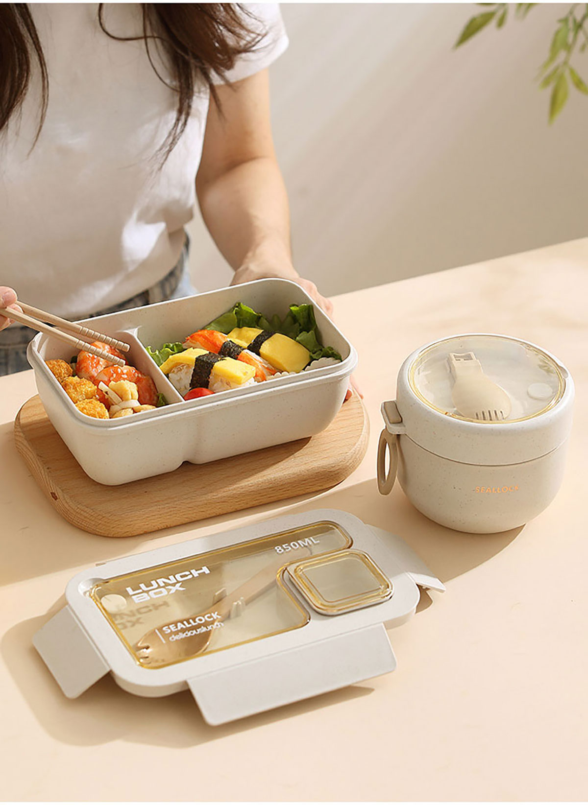 簡(jiǎn)麥便當(dāng)盒飯盒/套裝(飯盒+水杯/飯盒+水杯+灰色餐袋/飯盒+燕麥杯+灰色餐袋)