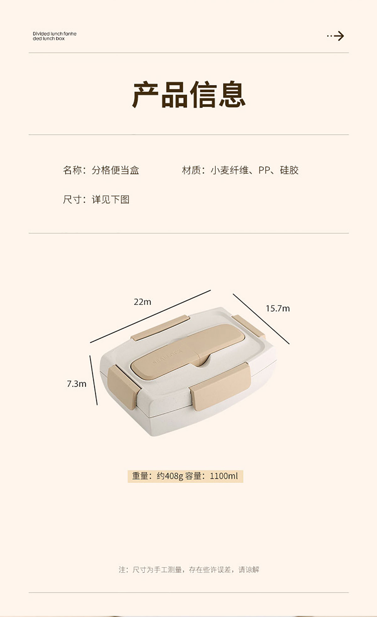 Size: 220*157*73mm/1100ml