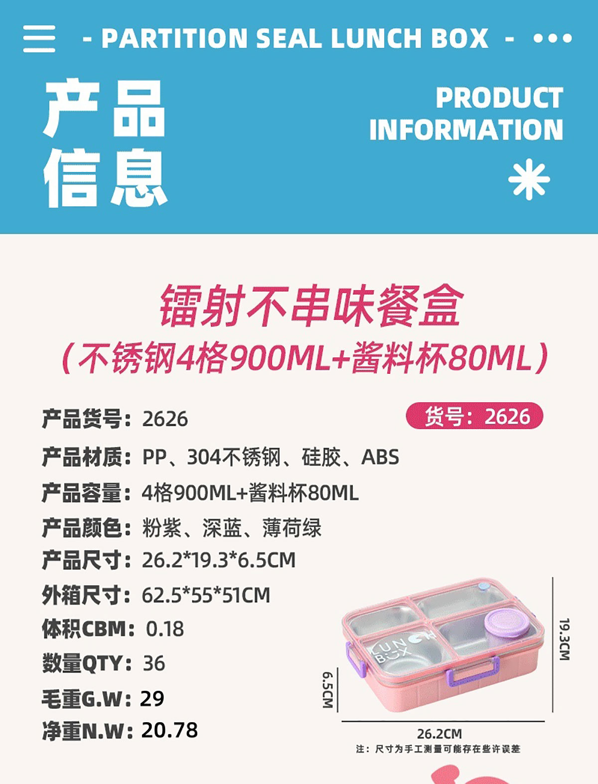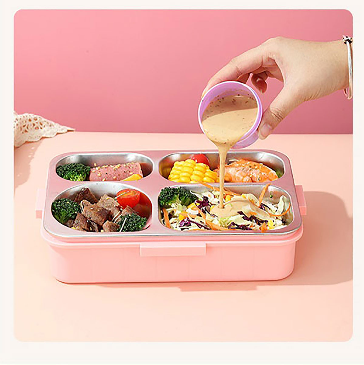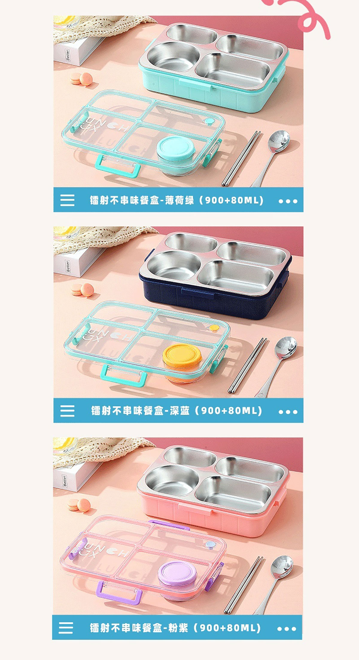 鐳射不串味餐盒(不銹鋼4格900ml+外置醬料杯80ml+不銹鋼勺筷)