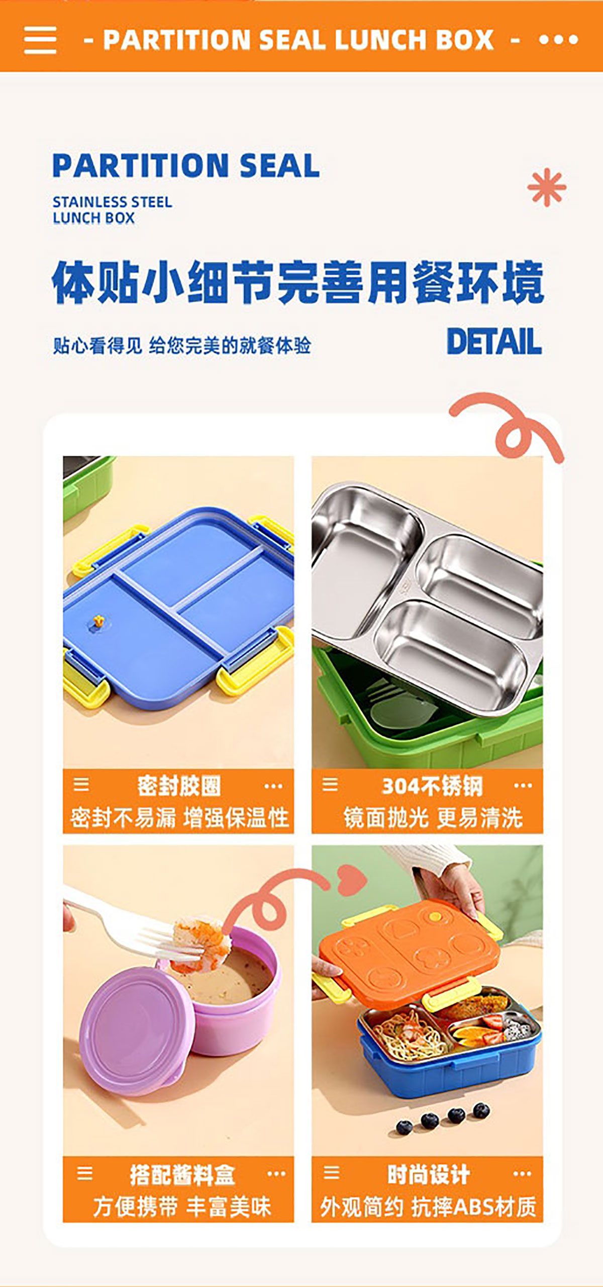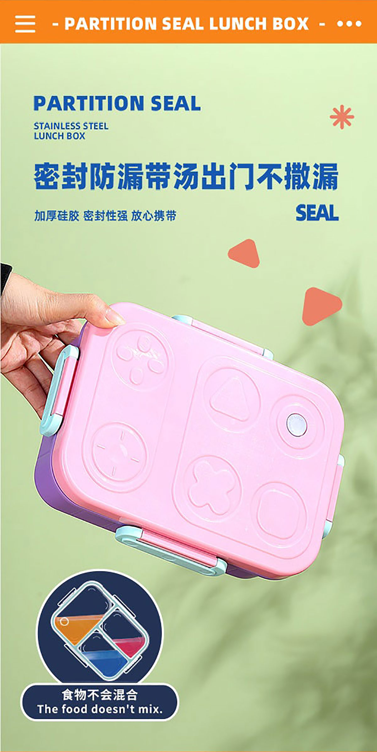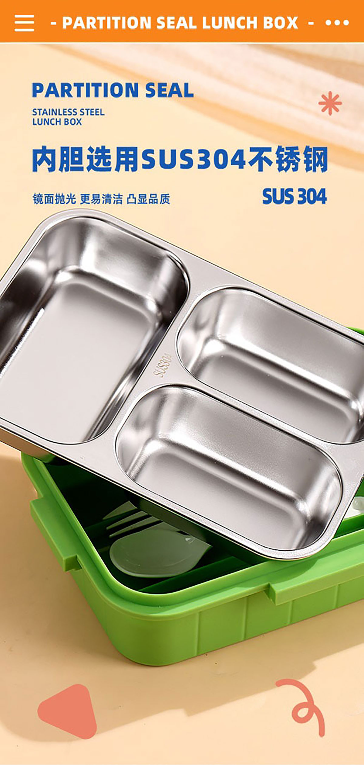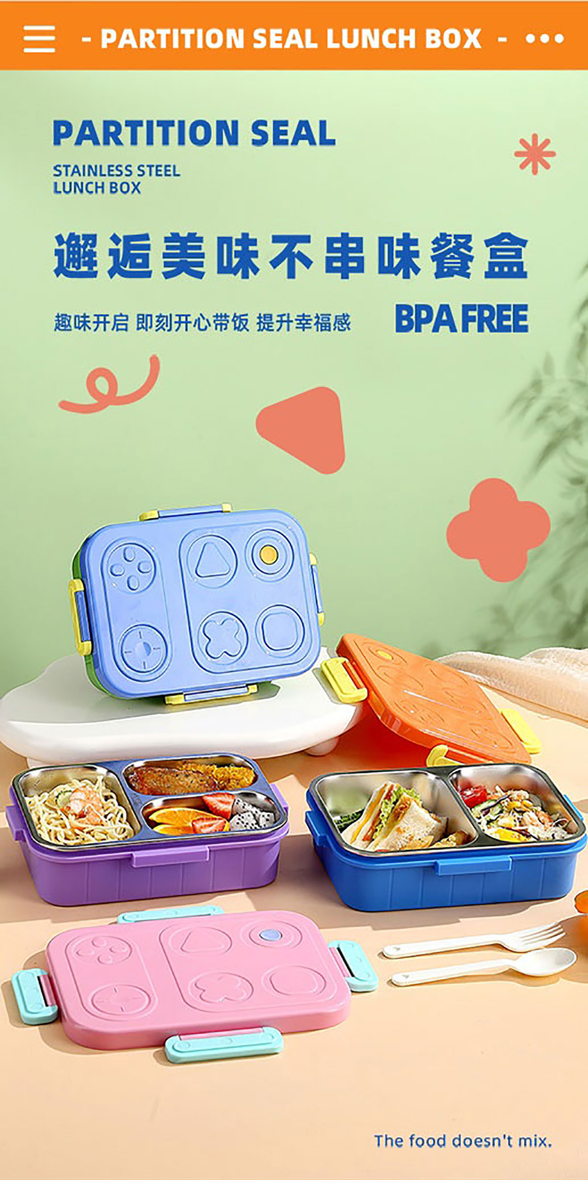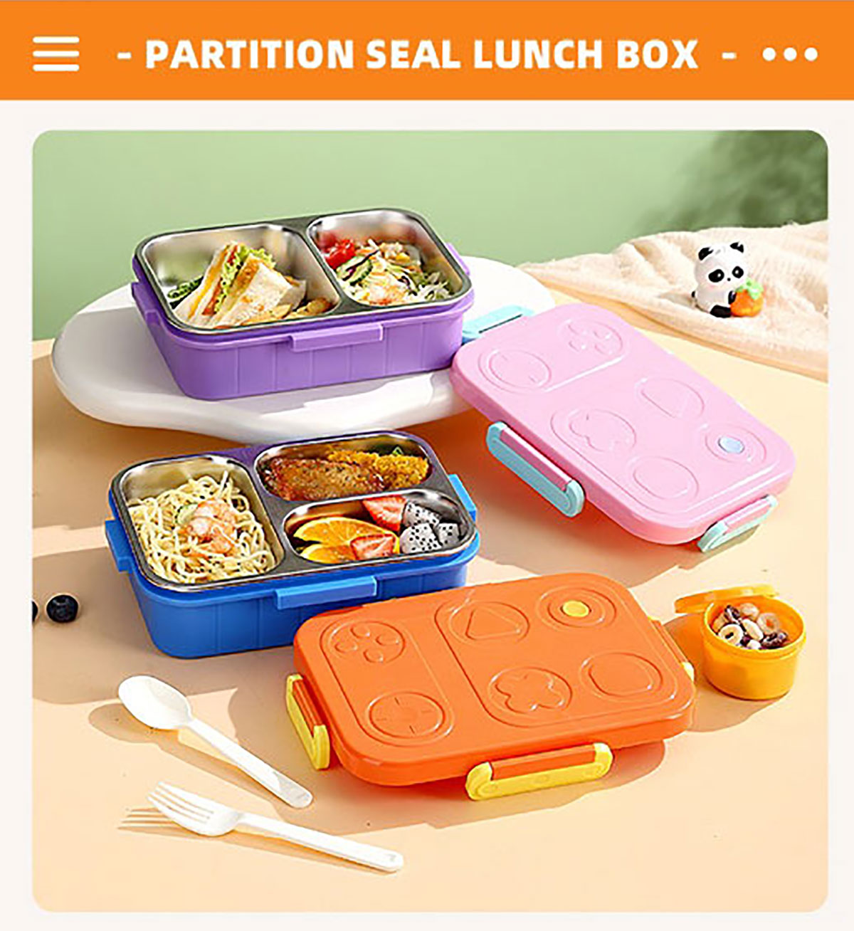 游戲機(jī)不串味餐盒(不銹鋼2格800ml/3格750ml+PP勺叉)