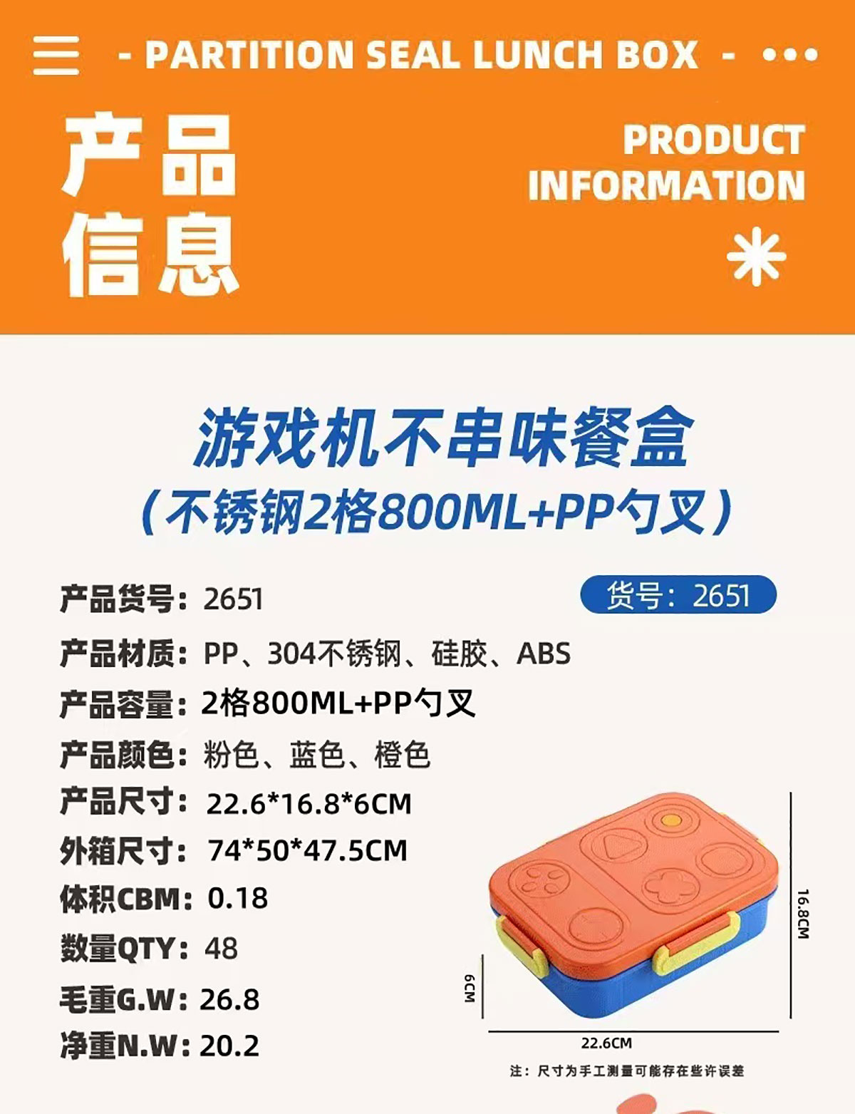 Size: AQX-2651(2格):227*177*65mm