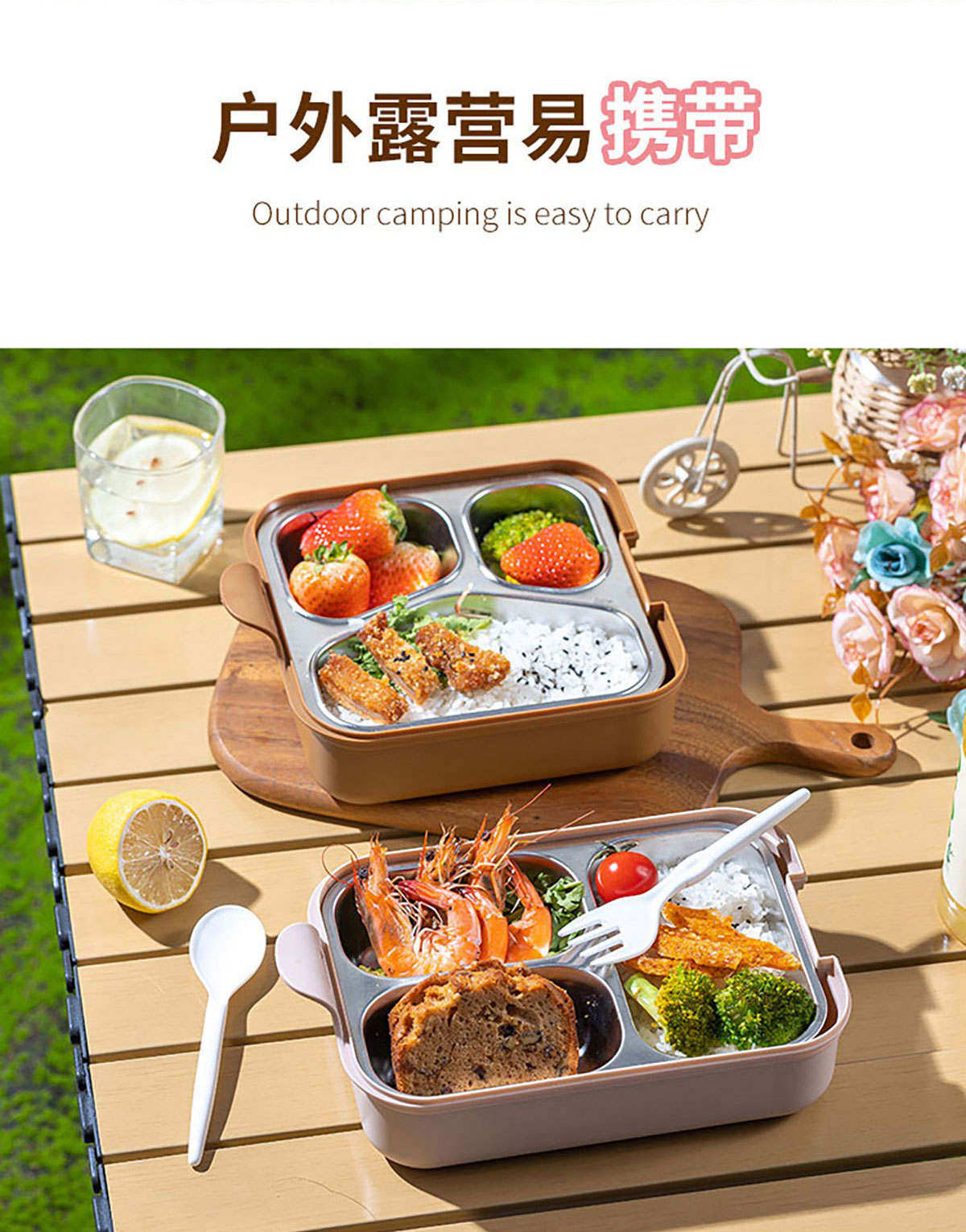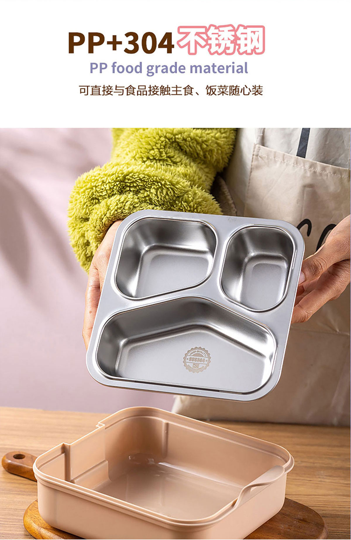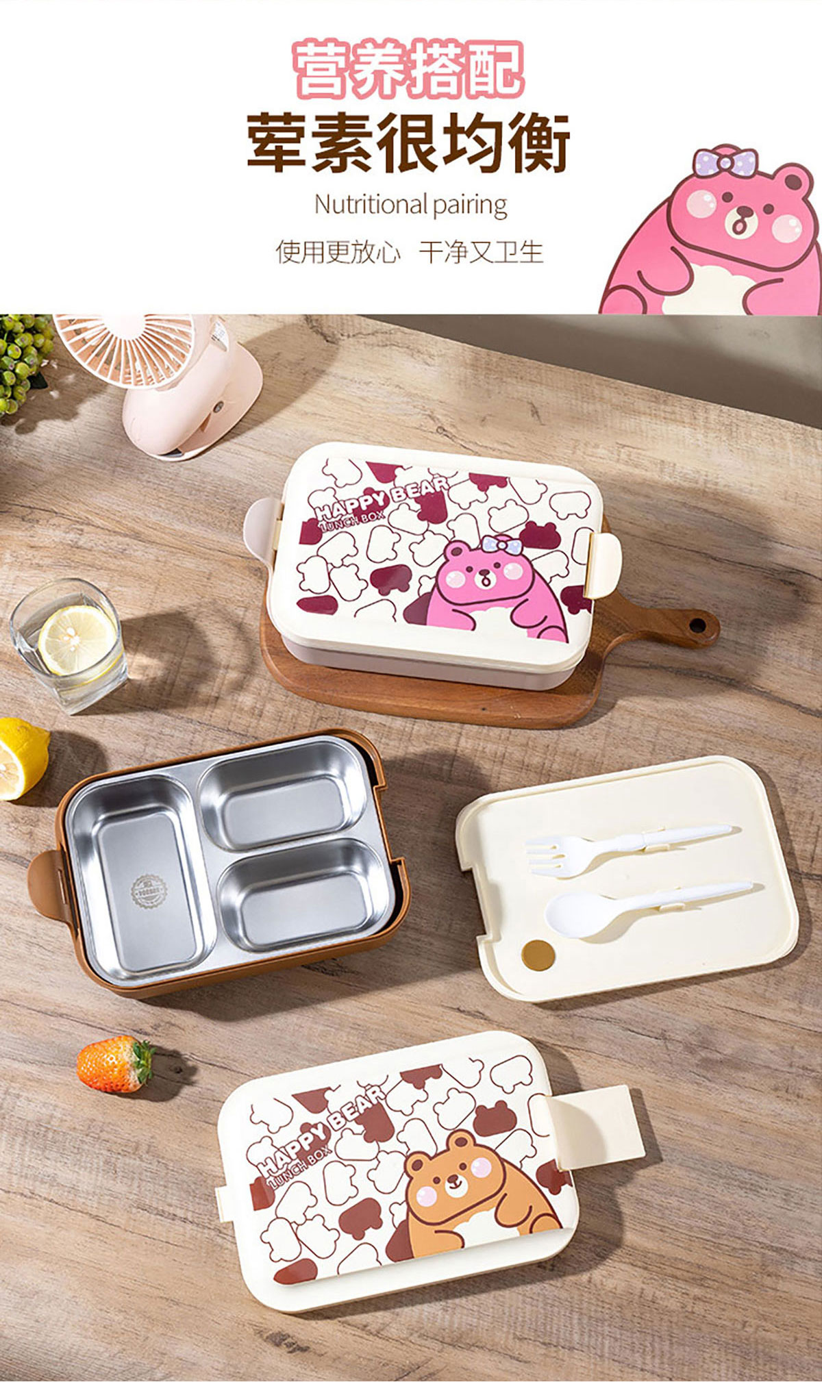 小簡長方形/方形三格不銹鋼飯盒