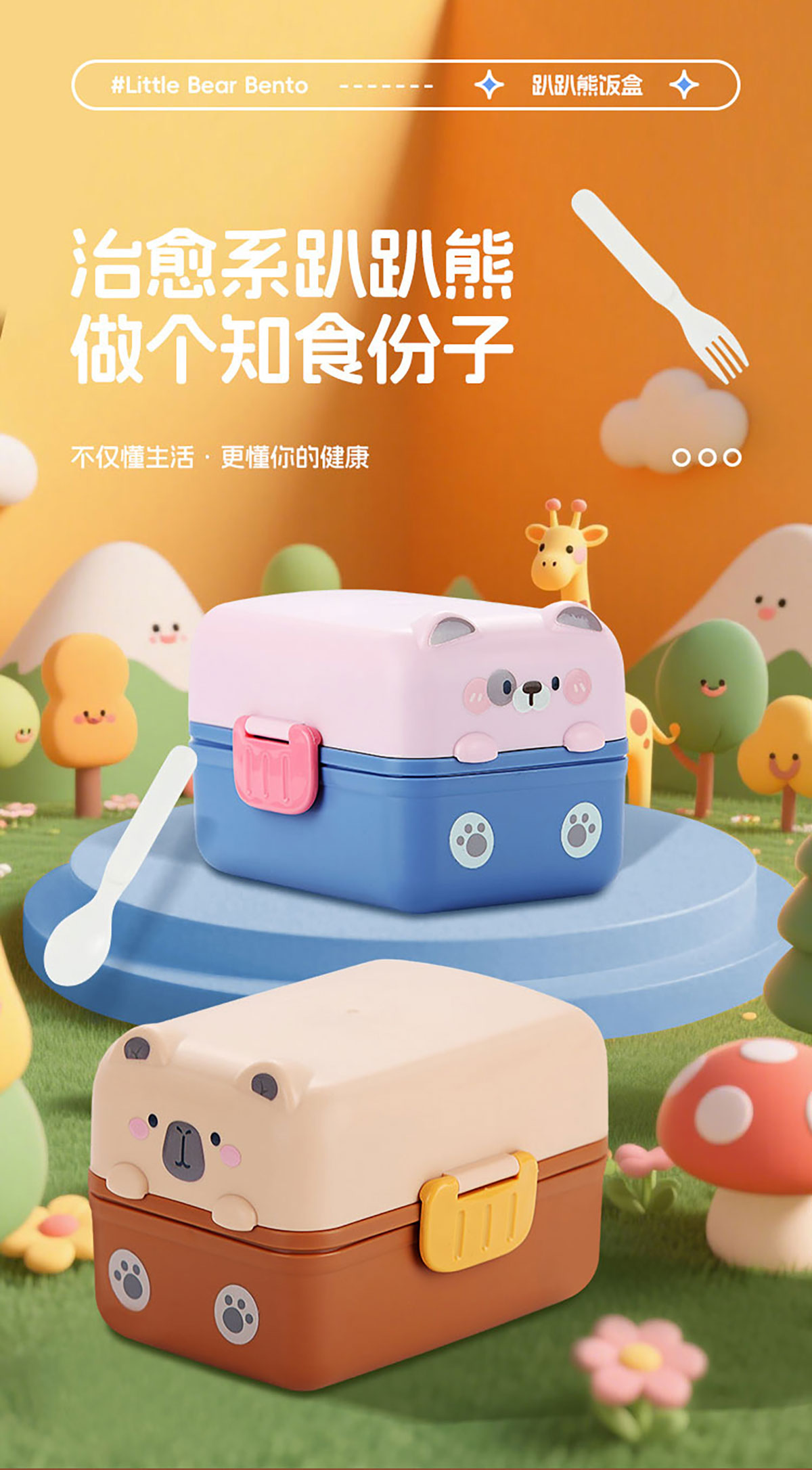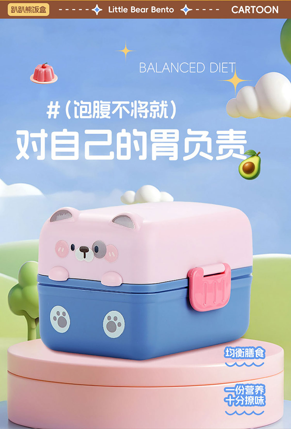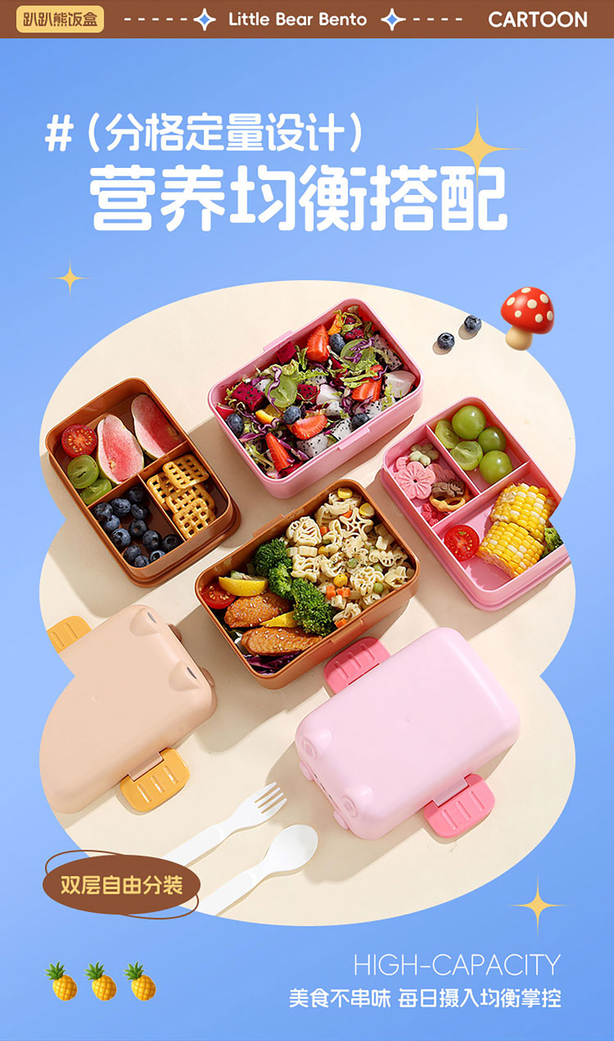 趴趴熊雙層飯盒上375ml+下800ml=1175ml