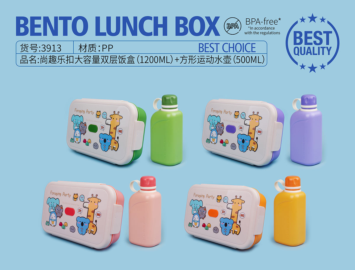 尚趣樂(lè)扣大容量雙層飯盒(1200ml)+方形運(yùn)動(dòng)水壺(500ml)