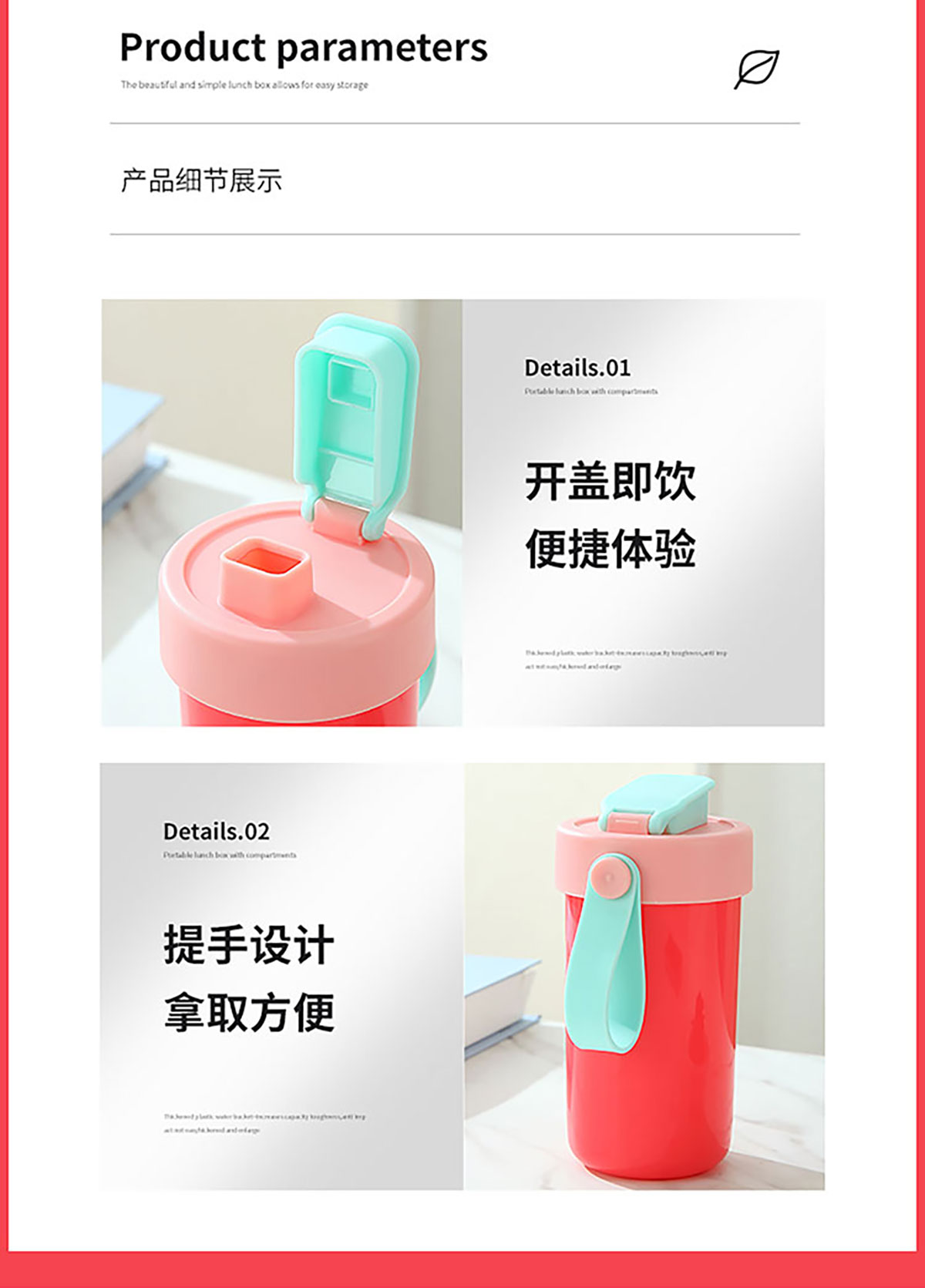 SWY-T205(水杯套裝):飯盒:215*149*72mm/1000ml 水杯:直徑82*高161mm/480ml